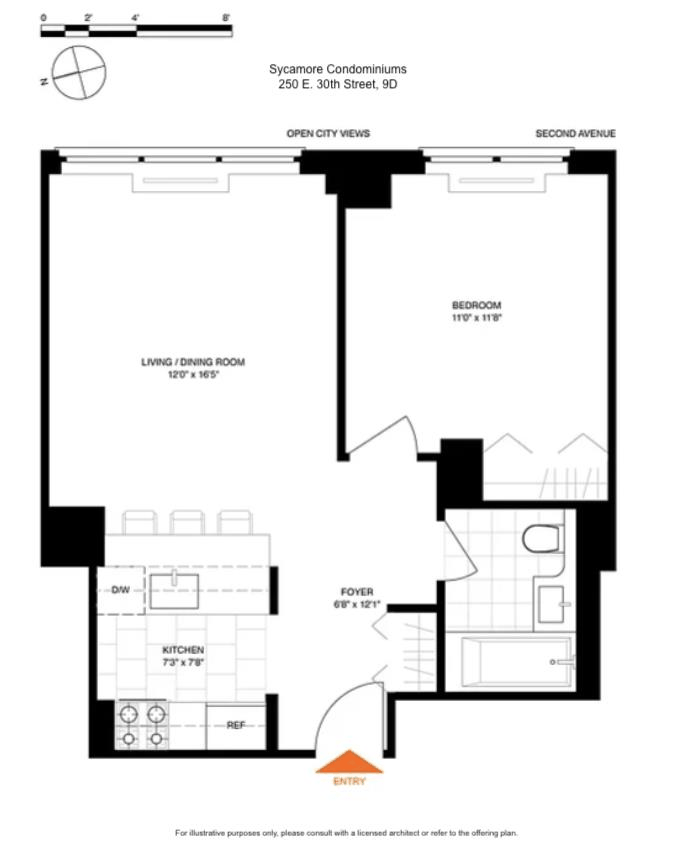 Welcome to Residence 9D at The Sycamore Condominiums A bright and inviting one bedroom home offering open city views and an abundance of natural light through oversized east facing windows.