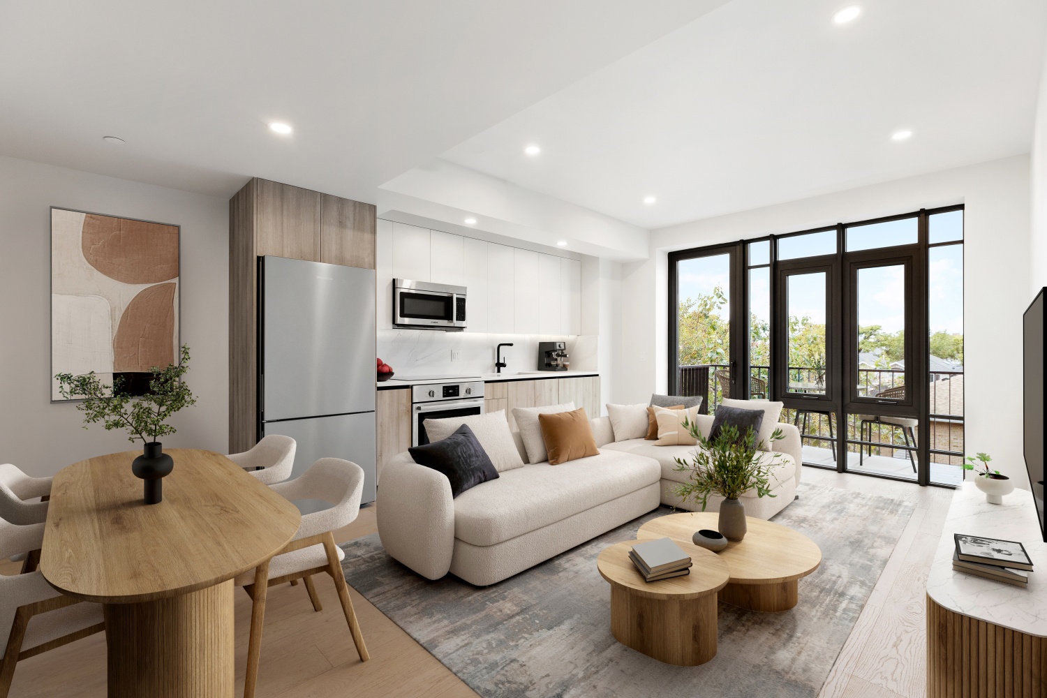 Sophie Condominium is a collection of 24 newly constructed condominiums including studio, one- and two-bedroom residences, most offering private outdoor space. Curated amenities include a landscaped roof deck with skyline views, rear yard with manicured plantings and benches, fitness center, bike storage, and a virtual doorman. Onsite parking is available for purchase.