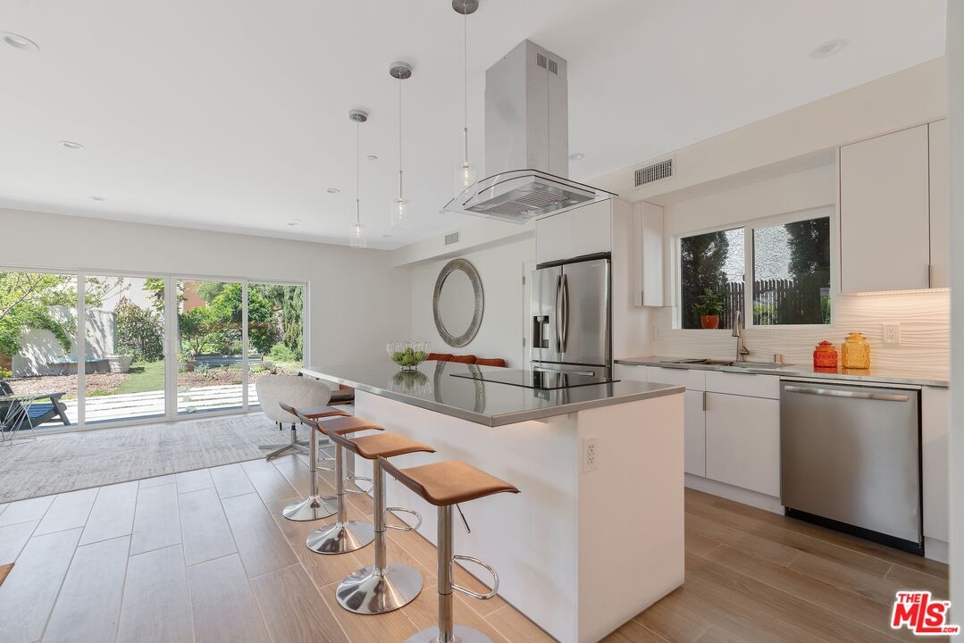 Built in 2023, this custom-designed home blends modern style with thoughtful efficiency, offering a light-filled layout in the highly sought-after Del Rey neighborhood. Designed for both comfort and functionality, the home features a smart four-bedroom floor plan, including a main-level bedroom and full bath ideal for guests or a home office. Upstairs, three additional bedrooms each enjoy their own private balcony, creating a seamless connection to the outdoors. The primary suite is a bright and tranquil retreat, complete with a spacious walk-in closet and a spa-inspired bathroom featuring a dual vanity. A generously sized laundry room is also conveniently located on the upper level. On the main floor, the open-concept design centers around a beautifully appointed kitchen with stainless steel appliances, abundant counter space, a large island, and ample storage all flowing effortlessly into the living and dining areas. Outdoor living is equally impressive, with a well-sized backyard and an expansive rooftop deck perfect for entertaining or relaxing under the California sky. Additional highlights include central heating and air conditioning, thoughtfully designed lighting, a finished garage with EV-charger readiness, and ample roof space for future solar installation. Clean, sophisticated, and perfectly tailored for Westside living, this exceptional home offers the best of modern California lifestyle.