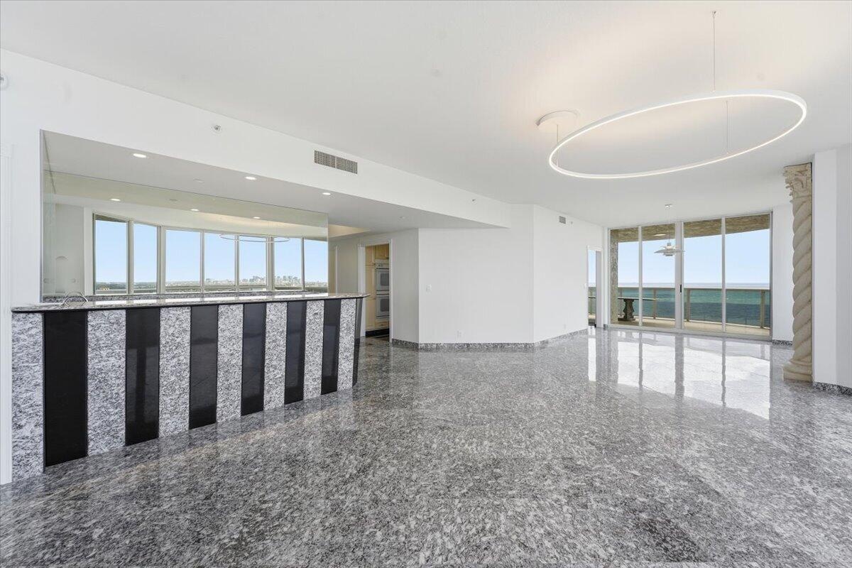 DOUBLE CORNER with PANORAMIC VIEWS OF OCEAN, COASTLINE , WATERWAYS & CITY. 2 WRAP-AROUND TERRACES. Third bedroom is currently an open den. Wall can be added. Private elevator. Resort-loke complex on 10 OCEANFRONT acres with poolside restaurant and full bar, 2 pools, 2 spas, private beach pavilion with cabanas, tikis, bbq and beach attendant. 2 pets, any size. VACANT, easy to see