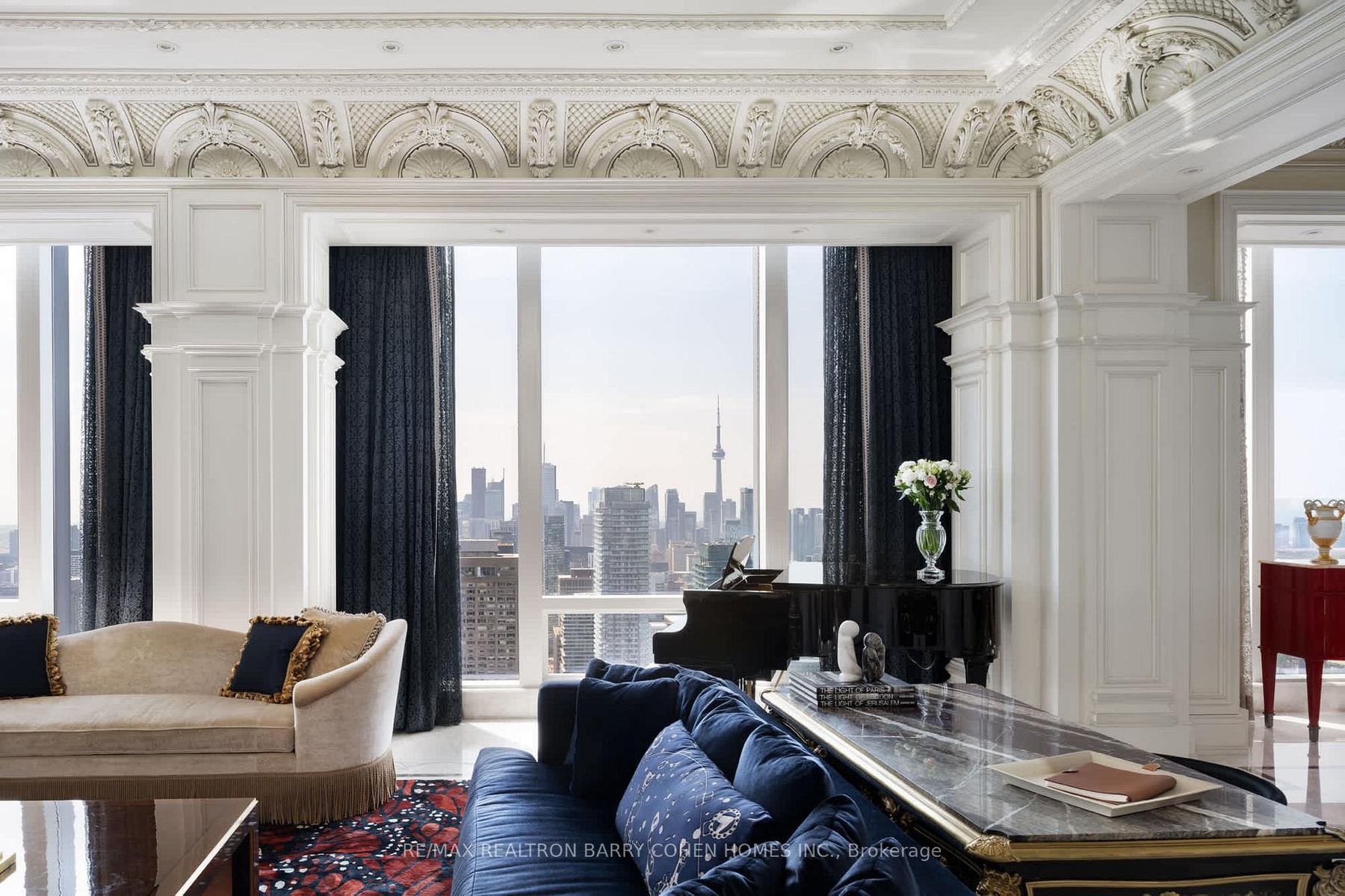 Penthouse Grandeur At The City's Most Iconic Address - Four Seasons Private Residences. Exquisitely Custom Designed And Finished By Its Owner. Spanning Over Half The Building's Floor Plate. 12 Foot High Ceilings. Floor-To-Ceiling Windows Overlooking The Captivating Lake Ontario And CN Tower With Breathtaking South, East And North Views. Two Expansive Private Terraces Perfect For Entertaining And Warm Family Lifestyle. Gourmet Eat-In Kitchen With Large Terrace, Lacanache 87" Gas Range, Custom Brass Hood. Onyx Floors. Granite Countertops. Wine Cellar, 3 Gas Fireplaces With Marble Mantels, Soaring And Domed Ceilings With Custom Plaster Embellishment And Crown Moulding. Custom Wall Panelling Throughout. Fabulous And Full Primary Bedroom Suite With Spa Like Ensuite, Steam And His+Her Closets. Walk-In Wine Room. Two Private Elevators. Extensive List Of Custom Luxe Appointments. In Suite Hotel Dining And Services. Steps To Yorkville, The Residence Shops And City Parks. Truly A Rare Find! **EXTRAS** Lacanache 87" Gas Range W/ D/O, Grill,Griddle & Simmer Plate,Paneled Miele Dw, Miele B/I Coffee Maker,Microwave,2Warming Drawers, B/I Miele Steam & Electrical Oven, 2Paneled Miele F/F Drawers, Double Faber Exhaust, Miele W/D, ELF From Italy