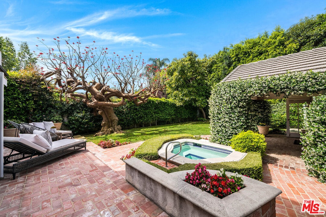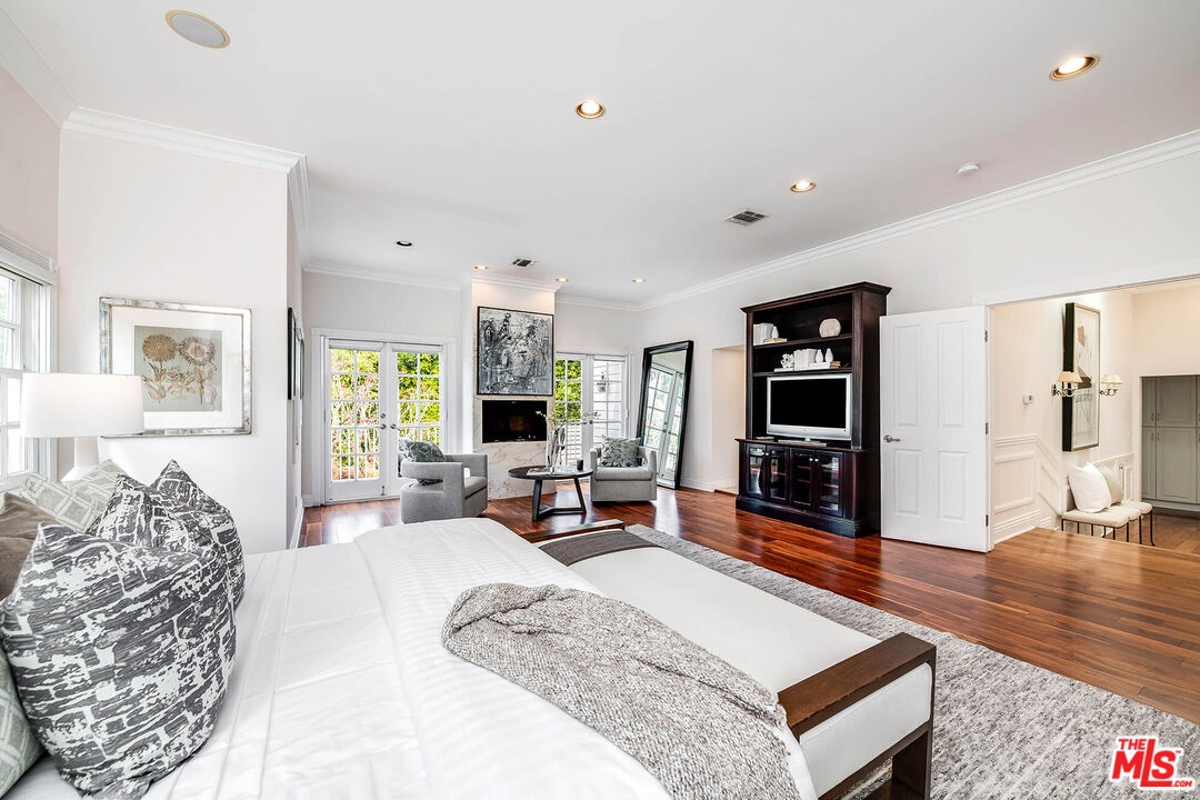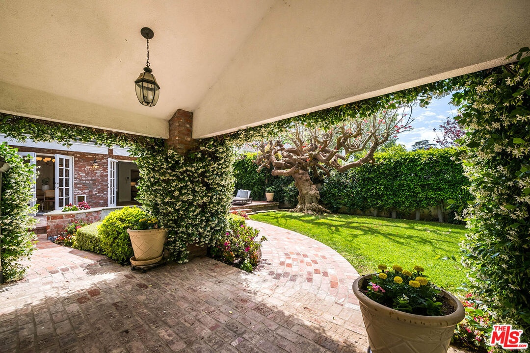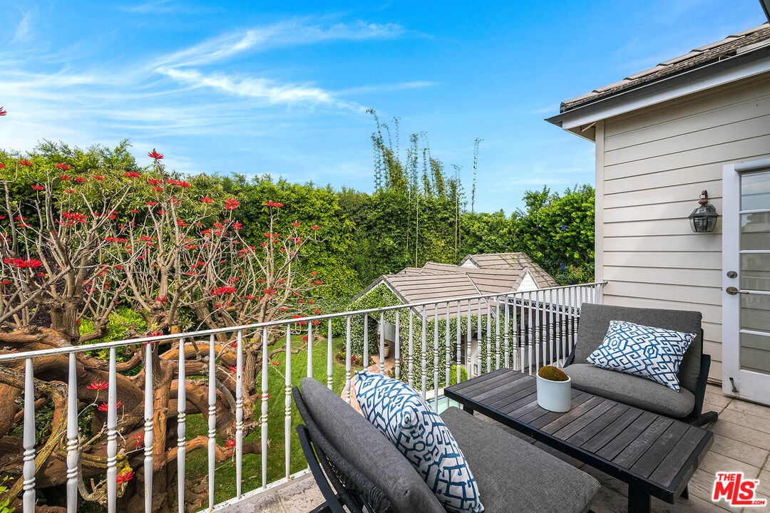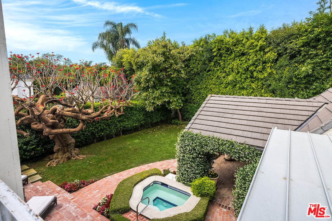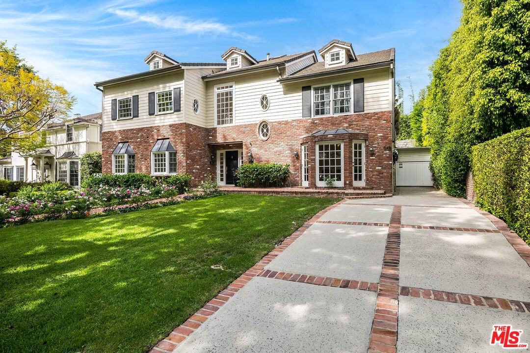 Spanning almost 4,800 square feet, including a fully permitted 558-square-foot ADU, this exceptional traditional residence offers a rare five-bedroom, six-bath compound on one of Holmby Westwood's most coveted streets. Beautifully positioned on a flat lot along prestigious, tree-lined Loring Avenue, the residence showcases refined detailing throughout, including crown moldings, hardwood floors, wainscoting, and French doors that open across the rear of the home to the expansive grounds. There are 4 second level bedrooms. The primary suite is a true retreat, featuring a sitting area with fireplace, French doors opening to a private balcony overlooking the garden, generous dual closets, and a luxurious step-down marble bath with vanity, soaking tub and separate shower. Three additional upstairs bedrooms each offer ensuite baths, providing comfort and privacy for family and guests. Designed for both elegant entertaining and relaxed daily living, the home features a grand formal living room with fireplace, formal dining room with bay windows, a sophisticated den or office with wet bar, and an inviting family room that flows effortlessly into the breakfast area and gourmet kitchen. The kitchen is appointed with marble countertops, high-end stainless appliances, a large pantry, and an oversized center island.The private backyard evokes the quintessential California lifestyle, with mature landscaping, brick patio, grassy lawn, spa, and an extraordinary 525-square-foot covered outdoor living area ideal for year-round entertaining, alfresco dining, and game-day gatherings. The detached ADU includes a sitting area, bedroom, and full bath, offering exceptional flexibility for guests, extended family, or a private workspace.Ideally located moments from Warner Avenue Elementary, Holmby Park, Century City, Beverly Hills, UCLA, and Westwood Village, this move-in-ready residence represents a rare opportunity to own an updated classic in one of the neighborhood's most prestigious settings.