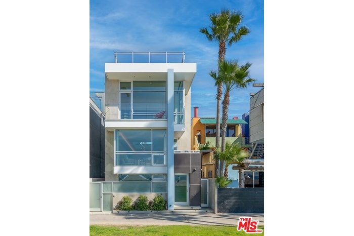 Welcome to an extraordinarily beautiful oceanfront home in the most sought-after, rarely available residential area of Venice Beach a true expression of elevated coastal luxury. Perfectly positioned in one of the area's most prestigious locations, this architectural masterpiece captures breathtaking views from Palos Verdes to Malibu. Custom-built by renowned RJC Builders, this exceptional residence showcases unparalleled craftsmanship, thoughtful design and a rare sense of privacy. Spanning three levels of refined living space, the home is crowned by a spectacular 525 square foot rooftop deck and enhanced by a 4-stop elevator and an oversized garage accommodating 4 full-sized vehicles. The main living area makes an unforgettable first impression with a soaring two-story ceiling above the dining area with a striking handblown Siemon & Salazar chandelier. Stunning glass-enclosed, cantilevered floating staircases add to the home's architectural allure. Disappearing sliding glass doors off the living room transition seamlessly to an indoor-outdoor experience with white water ocean views. The living area is further elevated by rich wood flooring, custom built-ins, a sleek bar with an undercounter Subzero beverage center and a sophisticated linear fireplace. The world-class chef's kitchen is nothing short of extraordinary. Anchored by a statement island crafted from Walker Zanger quartzite it features a full suite of Gaggenau and Miele appliances, a custom-designed hood, interior lit cabinetry, dual sinks with Dornbracht fixtures and a Kessebhmer pullout pantry. Two spacious ensuite bedrooms with Italian porcelain tile, designer finishes and glass-enclosed showers and a dedicated laundry center complete this level. Lavish primary suite offers a serene, spa-like retreat with ocean views. Luxurious details include Aluminex skylights with retractable Lutron skyshades, linear fireplace, luxury soaking spa tub, steam shower, two water closets, in suite laundry and an expansive walk-in closet illuminated with natural light from skylight and floor to ceiling window and mirrors. The upper-level family/media room is framed by a dramatic wall of glass opening to a private balcony with unobstructed direct white-water views. This area also features a built-in workspace, undercounter Subzero beverage center and automated Lutron shades with blackout option. Ascend via outdoor Italian porcelain cantilever steps or the private elevator to your rooftop oasis finished with Ipe wood decking ideal for entertaining or relaxing alone with completely unobstructed panoramic coastal views. Additional features include Savant Home automation for climate control, Lutron lighting, central station security system with cameras and fire alarm, music and video. The first floor offers a self-contained guest apartment with its own entrance and direct beach access across the sand to the surf with a full kitchen, separate HVAC, washer/dryer, private patio, hardwood floors and an Italian porcelain tile ensuite spacious bathroom, offering ideal flexibility for private space, guests or extended stays.