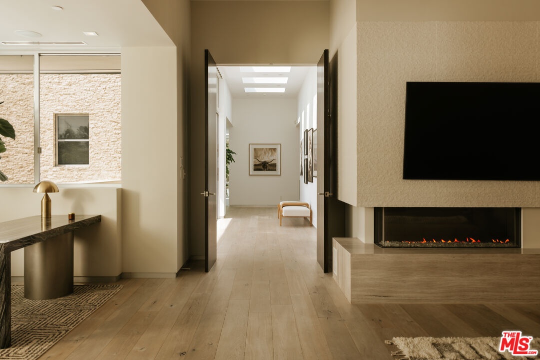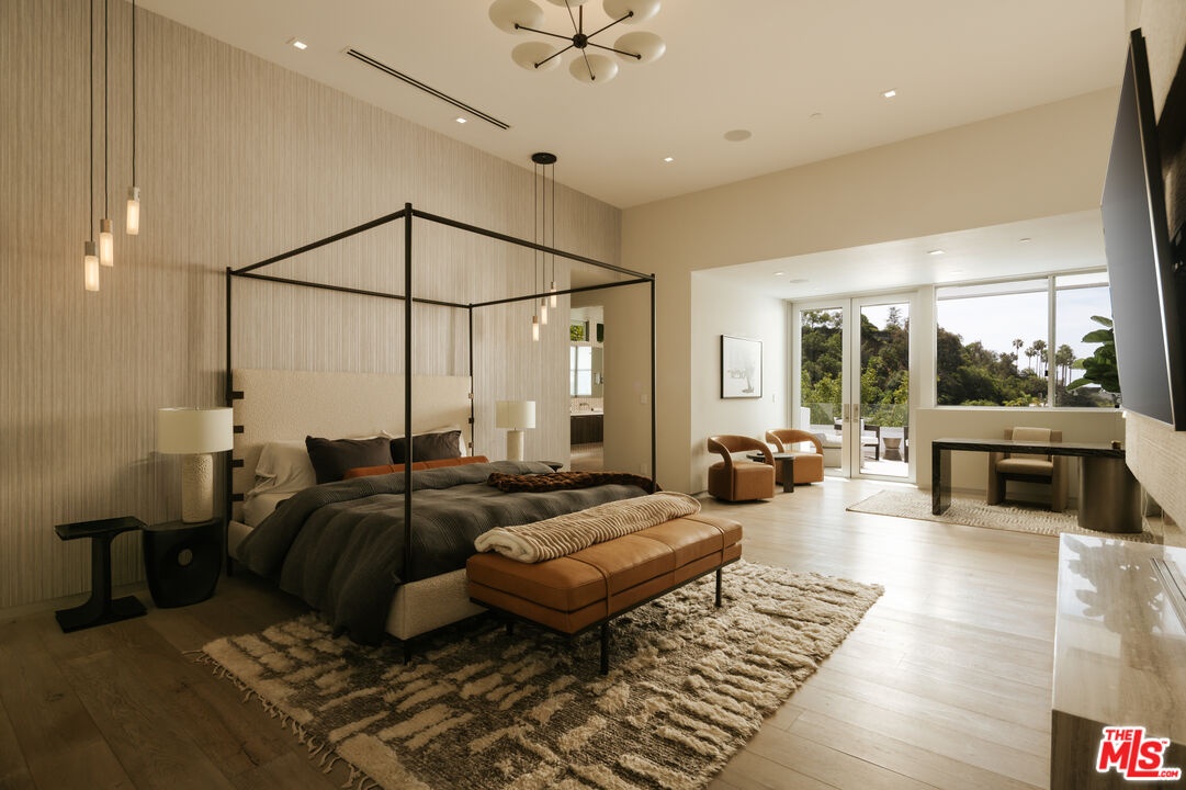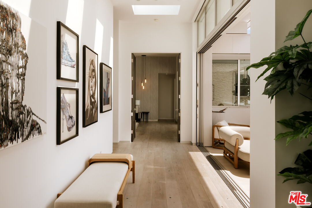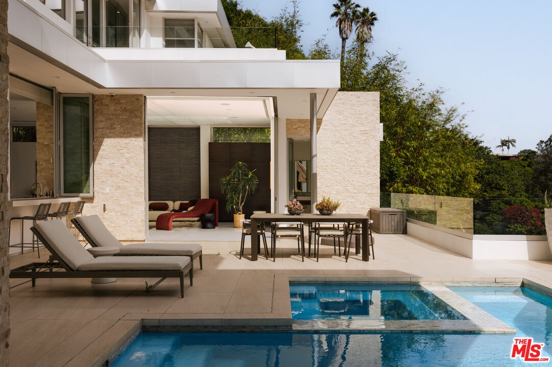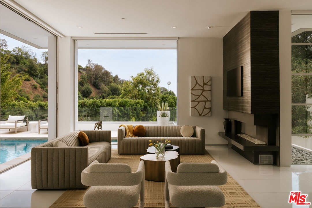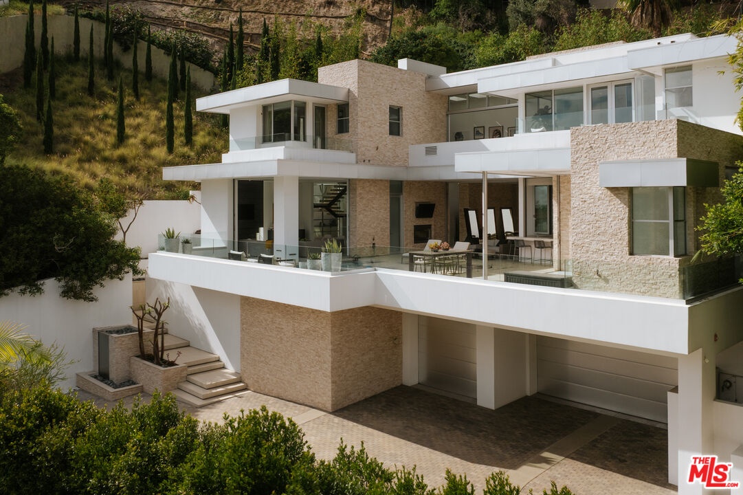 Tucked behind gates in the sought-after Beverly Hills Post Office, this striking modern estate sits on a peaceful hillside with expansive canyon and city views from almost every angle. Created for elevated everyday living and effortless entertaining, the home is filled with natural light and offers seamless indoor-outdoor flow throughout a highly functional floor plan. Spanning nearly 7,200 square feet, the residence includes six bedrooms and seven bathrooms, providing ample space for family, guests, work, and relaxation. Thoughtfully selected features enhance the experience at every turn, including an elevator, fully automated Crestron system, temperature-controlled wine refrigerator, floating glass and wood staircase, gourmet kitchen with custom cabinetry and premium appliances, multiple skylights, and numerous patios and balconies designed to showcase the incredible views. The primary suite serves as a private escape with a fireplace, walk-in closet, spa-inspired bathroom, and its own terrace overlooking panoramic city vistas. Outdoors, the property is equally impressive with a spacious patio, pool and spa, outdoor grill, indoor-outdoor bar area, and expansive Fleetwood sliding glass doors that effortlessly connect the living spaces to the surrounding landscape. A grand gated driveway creates a memorable arrival while highlighting the estate's sense of privacy and distinction. Meticulously designed and constructed with exceptional attention to detail, this residence is located in the prestigious Crest Streets and a great opportunity.