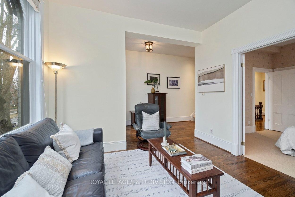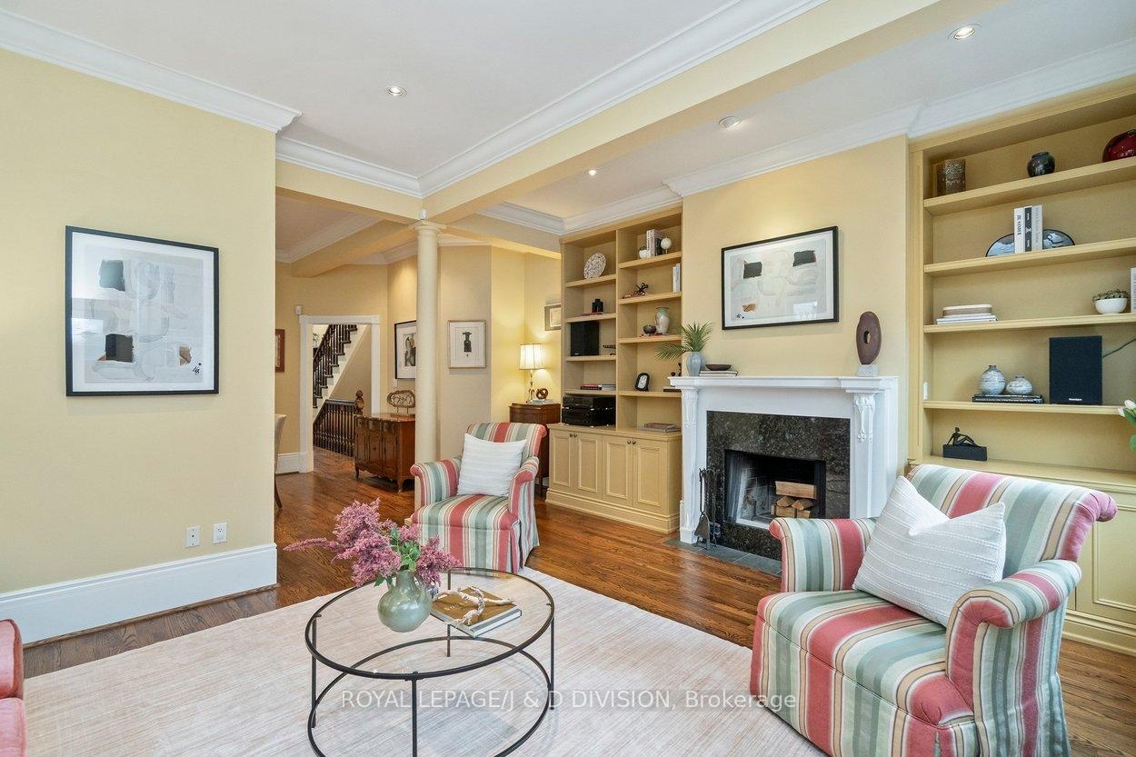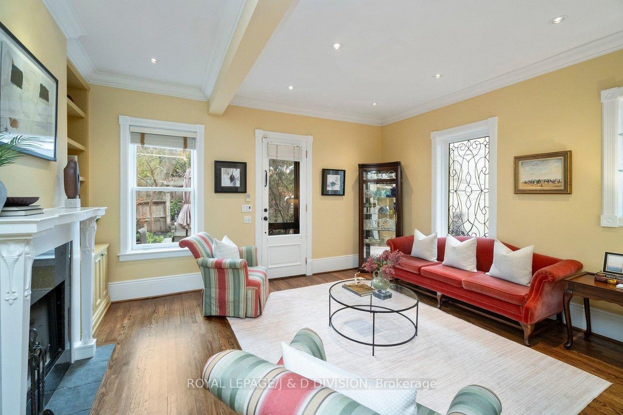 Tucked into the Republic of Rathnelly, one of Toronto's most unique and tightly held neighbourhoods, this striking Gable-Front Victorian offers a rare combination of scale, character, and location. Set on a quiet, tree-lined street where neighbours know each other and homes rarely come to market, this is the kind of address buyers wait years for. Inside, soaring ceilings on every level create a sense of volume rarely found, with a main floor that blends elegance and function through a formal living room with wood burning fireplace, a dining room with gas fireplace, and a kitchen that anchors daily life and entertaining. The second floor offers two bedrooms plus a flexible den easily converted back to a fifth, along with laundry and a primary suite with California Closets built-ins. The third floor adds two more bedrooms, including one with an integrated study area, and a walkout terrace above the city. A largely unspoiled lower level with wine cellar and side walkout offers exceptional future potential. Detached garage via shared drive with potential for additional rear parking. Steps to Summerhill, Nordheimer Ravine, Pump Park, transit, and within the coveted Brown School catchment. A rare opportunity in a true neighbourhood setting.