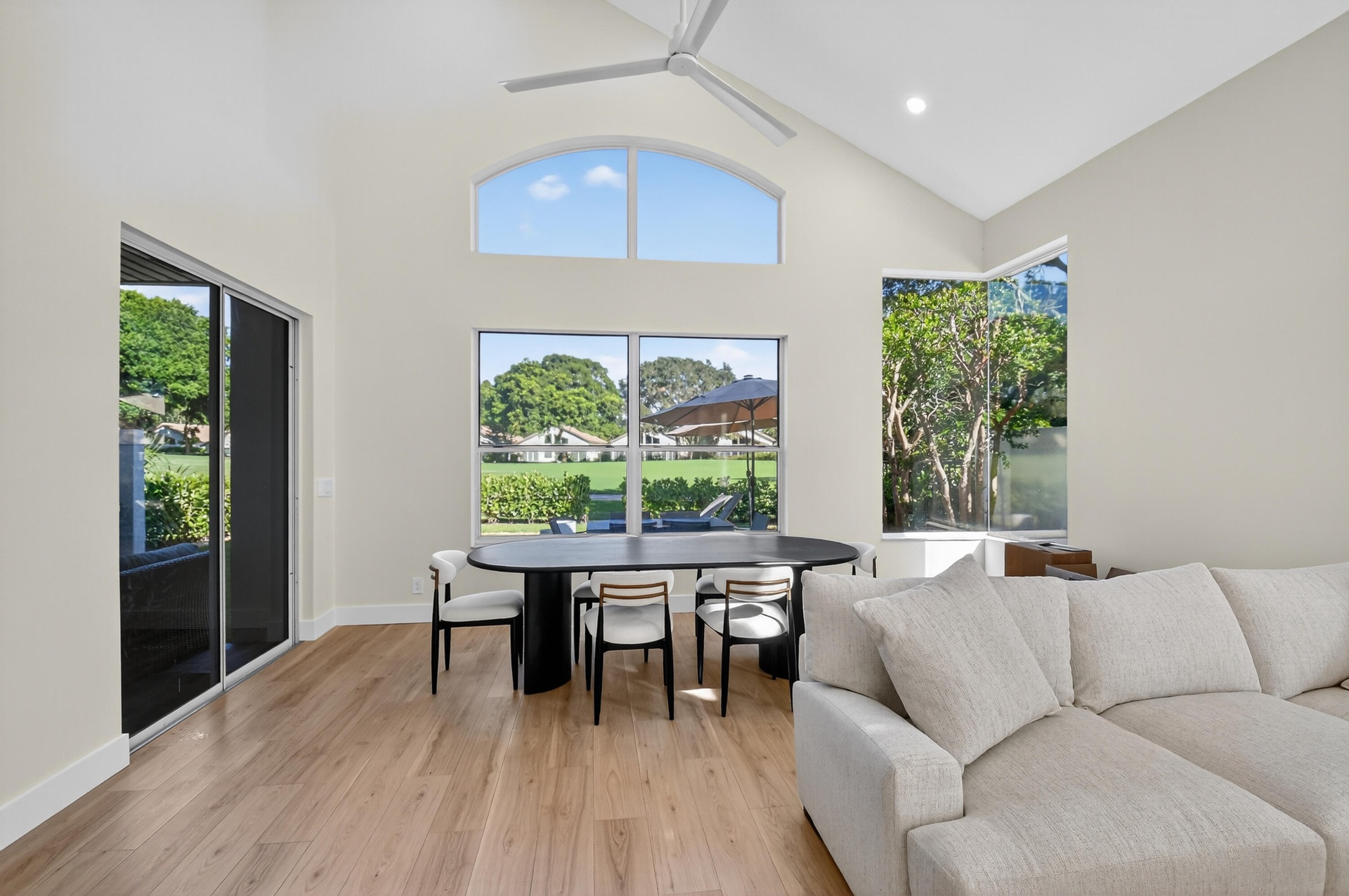 Broken Sound Seasonal Rental with Club Course Golf Membership - 4 Month Min Lease. Enjoy the country club lifestyle in this fully furnished, turnkey seasonal rental offered with a Club Course Golf Membership. This beautifully renovated townhome features 3 bedrooms, 2.5 baths, and 2,305 SqFt of modern living space with smooth vaulted walls and an open layout. The new kitchen boasts white cabinetry, stainless steel appliances, and a snack bar, opening to the spacious living room with golf course views. The primary suite is conveniently located downstairs, complete with a walk-in closet and a stunning renovated bath with a soaking tub and frameless glass shower. Upstairs, you'll find two guest bedrooms, a loft, and a full bath—plus a balcony overlooking the 8th fairway of the Club Course. The backyard is perfect for entertaining, with a grill, dining furniture, astroturf, and sweeping golf course views. Just steps from your front door, you'll also enjoy the heated Cedar Cay community pool. This home is offered turnkey for your seasonal stay, combining comfort, luxury, and a prime Boca Raton location.