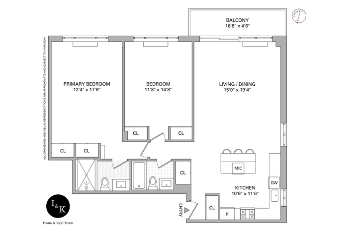 This beautifully proportioned home offers two generous bedrooms and two full bathrooms, thoughtfully designed for comfortable daily living as well as entertaining. With sunny southern and western exposures, the apartment is filled with natural light throughout the day, while oversized windows with motorized shades frame open views, including a glimpse of the downtown skyline. Just off the living space, a private 75-square-foot balcony offers the perfect spot for morning coffee or an evening unwind above the city.