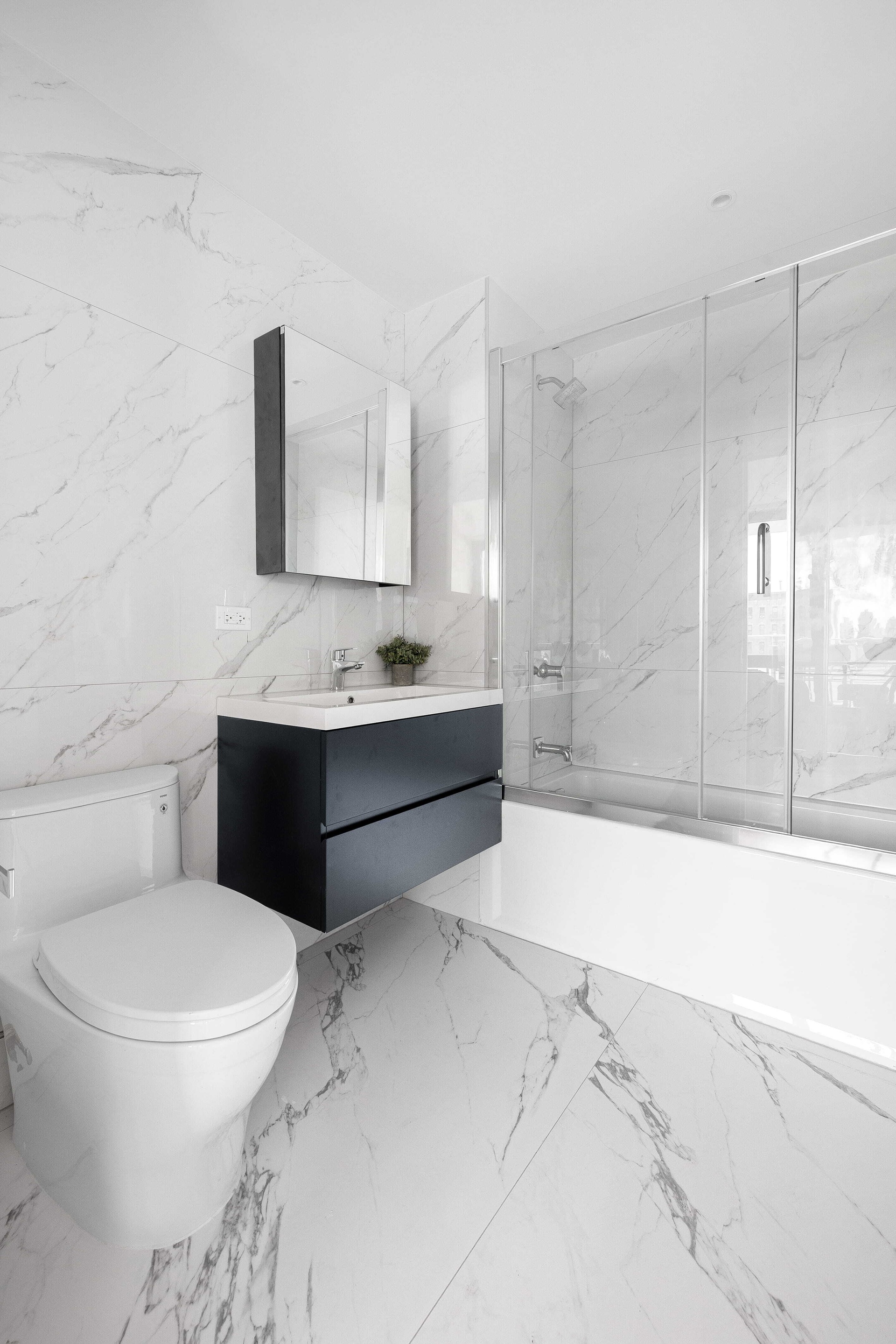 Additional features include individually controlled heating and cooling in every room, an in-unit Bosch washer and dryer, and a beautifully finished bathroom with large-format tile and a sleek floating vanity. Parking and private storage are available for separate purchase.