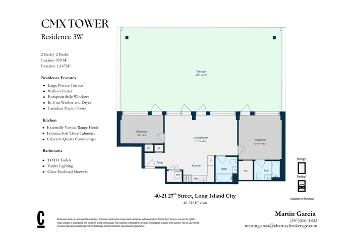 Introducing Residence #3W, an elevated 2-bedroom, 2-bathroom home featuring a one-of-a-kind sprawling private terrace. This sun-drenched residence offers a thoughtfully designed and flexible layout, with the potential to convert to a three-bedroom, all framed by floor-to-ceiling windows that flood the home with natural light throughout the day.