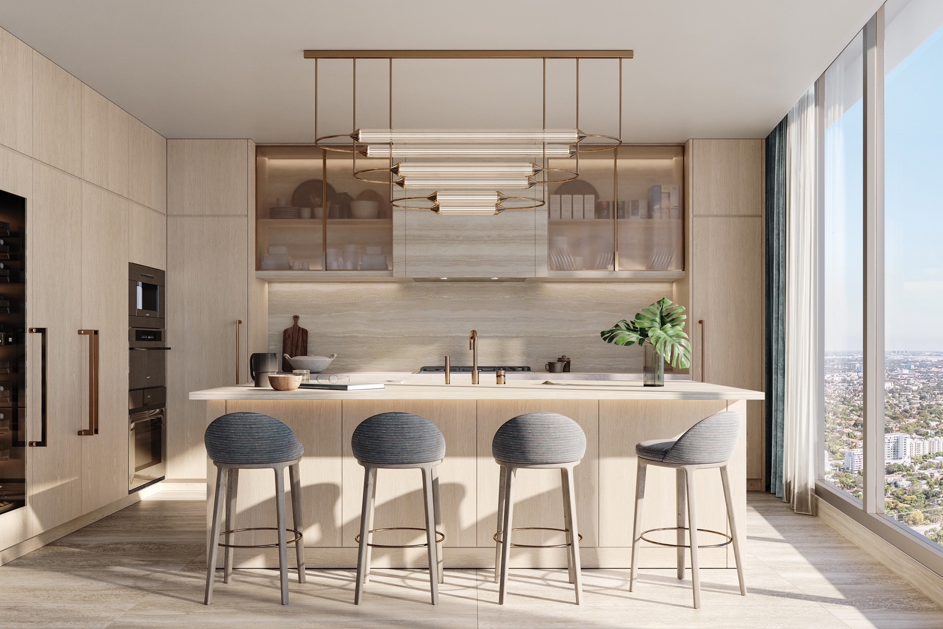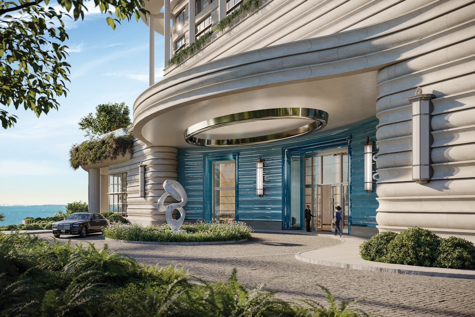 This oversized residence offers grand living and entertaining spaces, floor-to-ceiling glass, and private elevator entry, all complemented by breathtaking Biscayne Bay views.