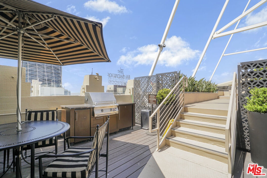 Step into the heart of old Hollywood glamour with this stunning, move-in ready loft in the full-service building. Amenities offer the best in luxury living with 24-hour doorman service, valet parking, and access to a panoramic rooftop lounge featuring a fire pit and BBQ. A rare opportunity to own a piece of LA's cinematic history. The unit is located in a building which has been designated as a Historic-Cultural Monument and is covered under the Mills Act. This spacious loft offers dramatic, soaring windows (with included shades) flood the space with natural light and showcase captivating city views. Chef's kitchen with stainless steel Viking appliances, a spacious sleeping area with generous closet space, window with shades plus an in-unit washer and dryer for ultimate convenience. Live just steps from the Walk of Fame, theaters, fine dining, the Metro Red Line, and shopping. This is elevated loft living in the heart of Hollywood's most legendary location.