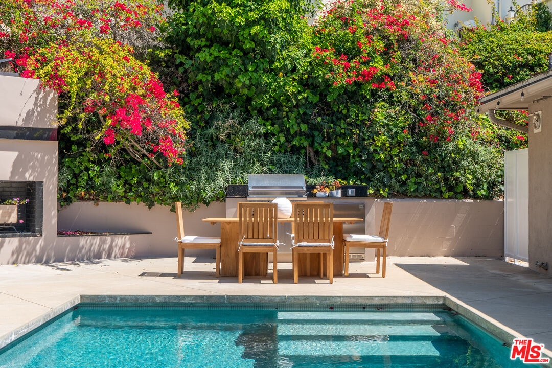 Welcome to "The Dalegrove MCM", a serene mid century modern oasis with pool, privately set in the coveted hills of Beverly Hills Post Office (BHPO). Situated at the end of a quiet cul de sac just off Coldwater Canyon, this single level residence offers a rare blend of privacy, tranquility, and central accessibility to Beverly Hills, West Hollywood, and Ventura Boulevard. Upon entry, you are welcomed by a light filled open floor plan where expansive walls of glass frame lush greenery and create a seamless indoor outdoor living experience. Clean architectural lines and warm finishes define the home, with a refined living and dining area flowing into a Poggenpohl designed kitchen equipped with premium appliances including a Sub Zero refrigerator. Stroll into your private retreat back yard featuring a heated pool and spa, sun drenched lounge areas, and mature landscaping. A built in outdoor kitchen with barbecue and refrigerator creates an ideal setting for entertaining or quiet relaxation. Positioned just far enough from Coldwater Canyon to avoid traffic noise, yet minutes from world class dining, shopping, and lifestyle amenities, Truly a rare opportunity to own a private design driven retreat in one of Los Angeles' most desirable hillside enclaves.