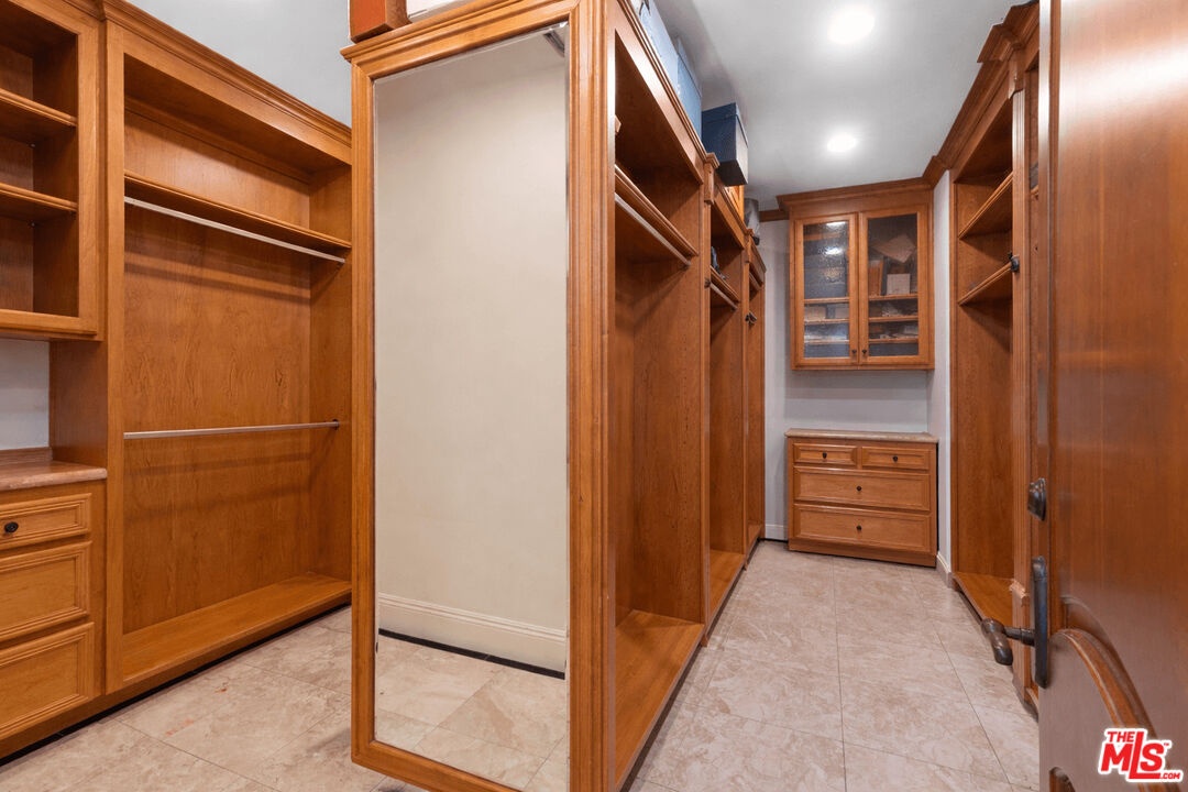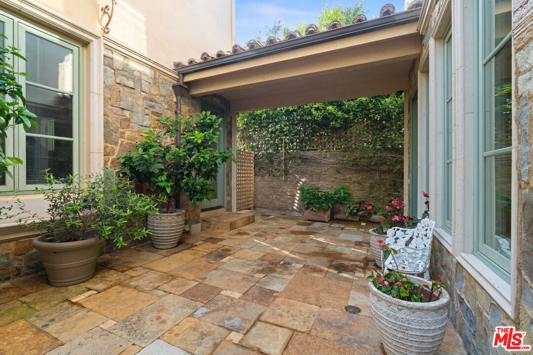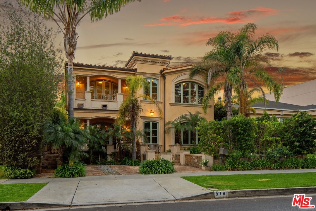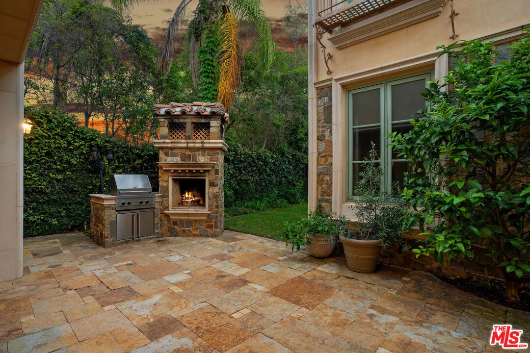 A refined expression of Spanish Colonial Revival architecture in prime Brentwood. Featuring 5 bedrooms, 4.5 bathrooms on a 7,154 SF lot with 5,498 SF of living space, the home unfolds through a series of grand yet inviting interiors. From the moment you enter, there is an immediate sense of character, with rich materials, custom woodwork, and a warmth that feels both timeless and lived in. A formal office, elegant dining room, and welcoming family room with a fireplace each anchor their own space, creating rooms that feel distinct yet connected. The kitchen, designed for gathering as well as function, includes a generous breakfast room that captures easy, everyday moments. Upstairs, the primary suite is generously scaled and feels tucked away and private, with a connected office that adds flexibility for work or quiet retreat. The spa-like bath, complete with a steam shower, adds to the retreat-like experience, while a secluded sundeck opens to sweeping city views. Outdoor living continues with a covered patio, where a fireplace and built-in BBQ create a natural setting for relaxed evenings and entertaining. A separate ensuite studio with its own fireplace and full bath above the garage, offers flexibility for guests, work, or additional living space. Located in one of Brentwood's most coveted neighborhoods, just moments from local farmers' markets, beloved restaurants, and boutique shops, the home offers a true neighborhood feel with the convenience of Westside living.