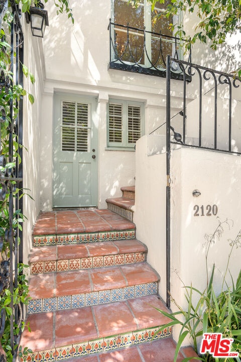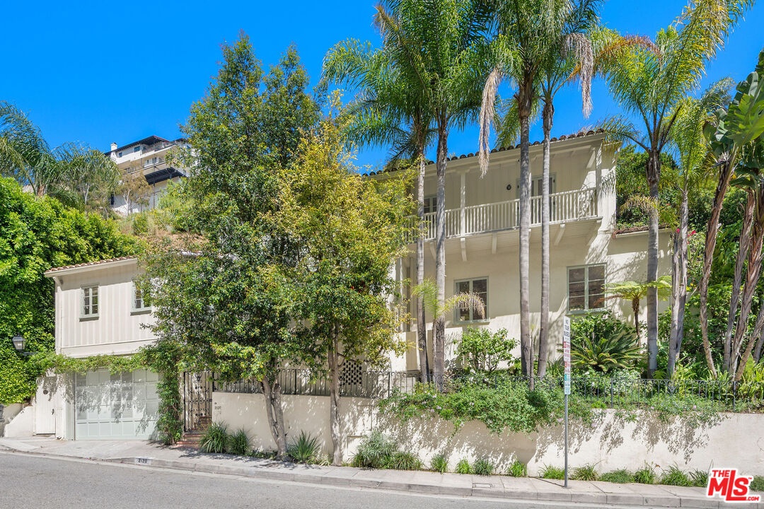 Beautifully landscaped, light-filled and gated Monterrey Colonial in Outpost Estates loaded with charm and abundant outdoor space. Formal entry provides access to a spacious living room with fireplace and views, a sunlit breakfast room and kitchen. First floor also includes an en-suite guest room, laundry room and powder. Upstairs are three spacious bedrooms including the en-suite primary with fireplace and balcony. Multiple patios provide all the space you'll need for al fresco dining and outdoor living space, with canyon vistas and peeks at the city lights. Two-car garage with direct access also connects to a den/office with separate entrance, potential to become an ADU. Coveted location with great access to Runyon Canyon.