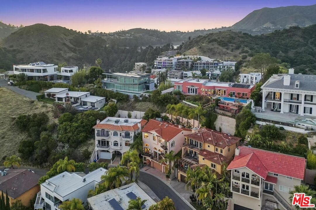 Perched atop the hills of the Hollywood Dell, stands this custom-built Mediterranean home. Enjoy expansive city and ocean views from the open concept living room with 20-foot ceilings characterized by wrought iron chandeliers and a built-in wet bar. A formal dining area connects the great room to a gourmet kitchen complete with Thermador range, Subzero refrigerator, Bosch dishwasher, a copper sink and ample built-in storage. Upstairs, find a flexible mezzanine level with 3/4 bath, which serves as the perfect setting for a den, office or library. On the top level are two guest bedrooms with full bathrooms, and a hotel-like primary suite with fireplace and private balcony with breathtaking views. Host dinner parties on the rooftop garden, adorned with fragrant roses and citrus vines. Other features include: French oak hardwood floors, elevator, 3-car garage and Pella doors and windows.