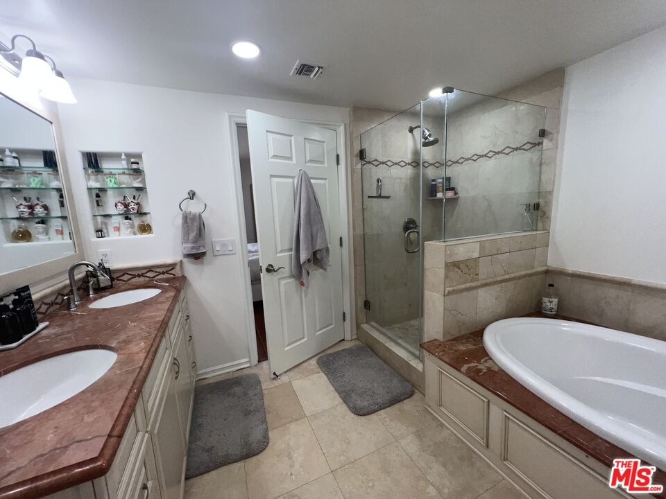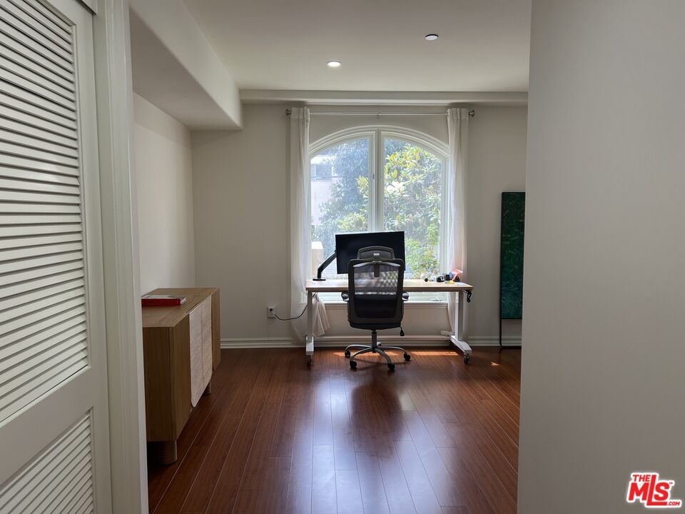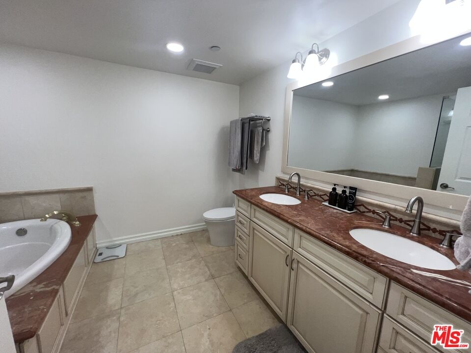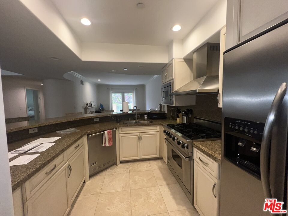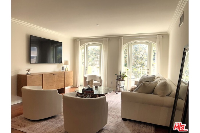 This single-level corner unit is filled with natural light and features a seamless indoor-outdoor flow, with a wraparound patio extending from the dining area to the living room and primary suite, creating a true "home-like" feel. Thoughtfully updated throughout, the unit showcases modern cabinetry, a fireplace, upgraded lighting, a security system, and controlled heating and air conditioning. The gourmet kitchen is equipped with granite countertops, high-end appliances, and a convenient breakfast bar-perfect for both everyday living and entertaining. The spacious primary suite includes a large walk-in closet and a luxurious en-suite bathroom with dual sinks and a soaking tub. The second bedroom is well-sized, with ample closet space and easy access to a full bathroom just outside the room. Multiple living and dining areas provide flexibility for both relaxing and hosting. Additional features include in-unit laundry and the option to rent furnished or unfurnished, with custom, high-quality pieces available. Residents enjoy premium amenities such as a rooftop deck with panoramic views, controlled building access, and two secured parking spaces. Ideally located near UCLA, Santa Monica, Beverly Hills, and Century City, this home offers easy access to top-tier dining, shopping, services, and the local farmers market, making it perfect for enjoying Brentwood's vibrant lifestyle.