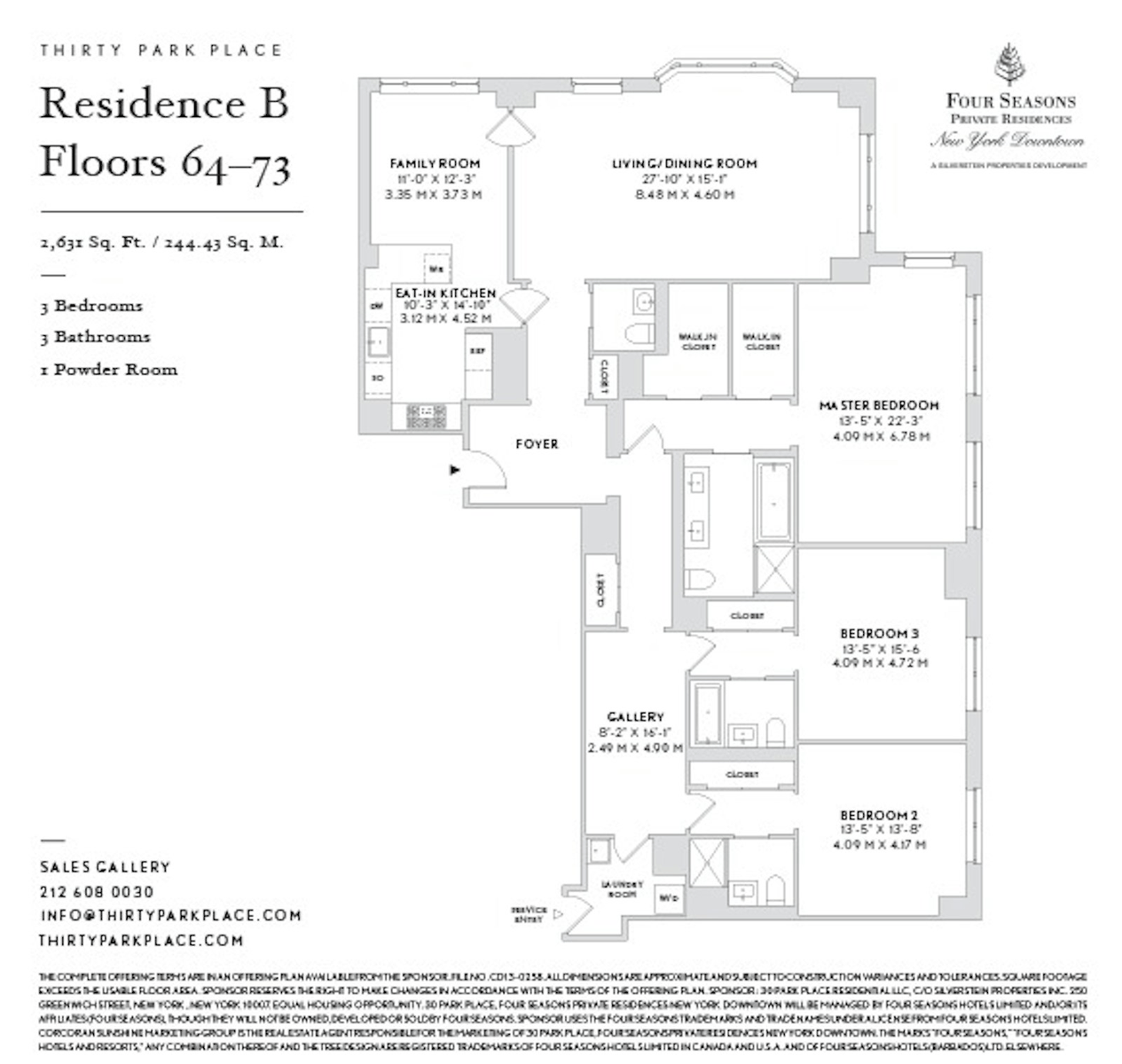 Developed by visionary Silverstein Properties, Inc., masterfully designed by Robert A.M. Stern Architects, and serviced by legendary Four Seasons Hotels and Resorts. With residences beginning on the 39th floor, the sweeping views are unparalleled. Residents may enjoy access to Four Seasons Hotel amenities including a spa and salon facilities, 75' swimming pool, attended parking garage, restaurant, bar and lounge, ballroom facilities, and meeting rooms, as well as a comprehensive suite of a la carte services. The 38th floor is devoted to private residential amenities including a fitness center and yoga studio, private dining room, conservatory and lounge with access to loggias, Roto-designed kid's playroom, and screening room.