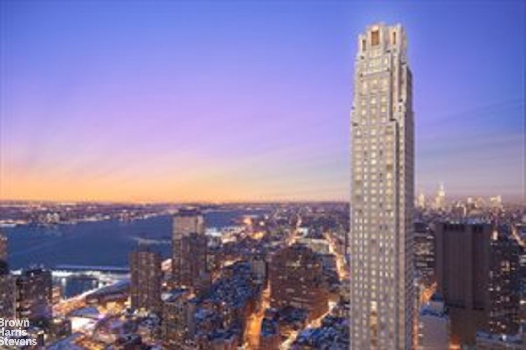 Residence 69B sits on the northeast corner enjoying sweeping views of the Midtown skyline, Hudson River, and East River. The corner Living/Dining Room is complimented with a bay window leading to an eat-in kitchen. The Master Bedroom Suite features 2 exposures, 2 large walk-in closets and a 5-fixture Bathroom. The second and third bedroom feature breathtaking eastern views and both have full en suite bathrooms. Generous entrance foyer and the abundance of closet space compliment the overall residence. Interior finishes include solid oak wood flooring with herringbone pattern, Bilotta rift-cut oak kitchen cabinetry, Gaggenau appliances, and marble bathrooms with Robert A.M. Stern custom-designed vanities. Systems feature ceiling hung four-pipe fan coil heating and air conditioning system with dedicated zones and pre-wiring for home automation.