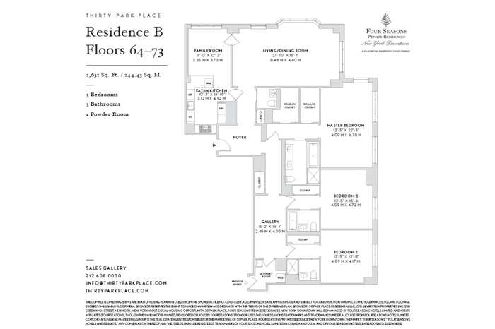 Developed by visionary Silverstein Properties, Inc., masterfully designed by Robert A.M. Stern Architects, and serviced by legendary Four Seasons Hotels and Resorts. With residences beginning on the 39th floor, the sweeping views are unparalleled. Residents may enjoy access to Four Seasons Hotel amenities including a spa and salon facilities, 75' swimming pool, attended parking garage, restaurant, bar and lounge, ballroom facilities, and meeting rooms, as well as a comprehensive suite of a la carte services. The 38th floor is devoted to private residential amenities including a fitness center and yoga studio, private dining room, conservatory and lounge with access to loggias, Roto-designed kid's playroom, and screening room.