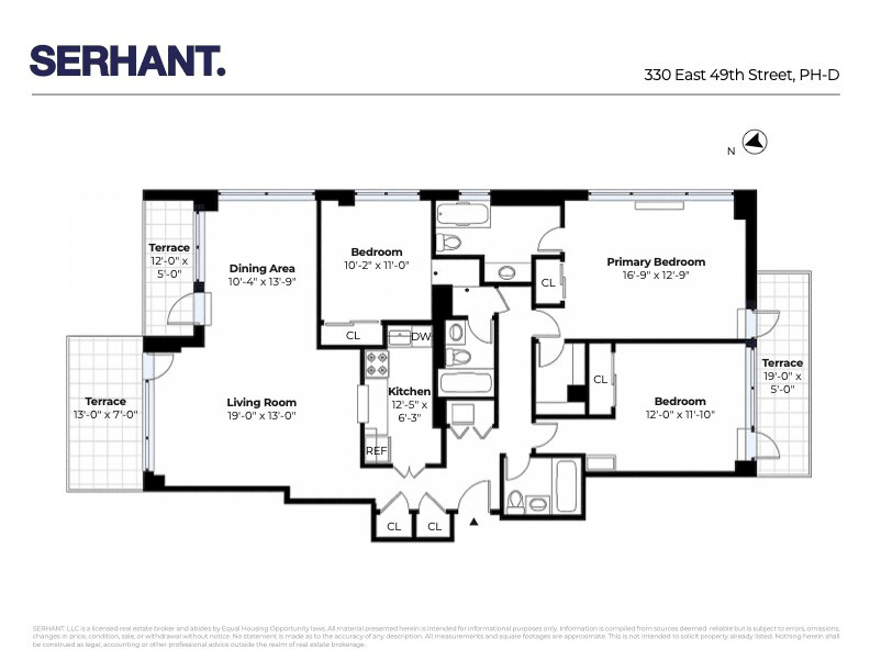 A well defined bedroom wing offers privacy from the entertaining spaces. The corner primary suite enjoys tranquil East River views, an en suite bathroom, and direct access to a third private terrace shared with one of the secondary bedrooms. Each additional bedroom is generously sized, and with three full bathrooms throughout the home, the layout easily supports a four bedroom configuration.