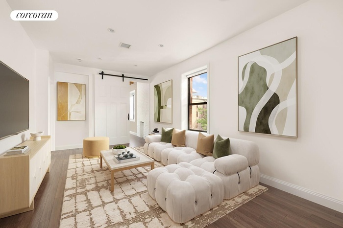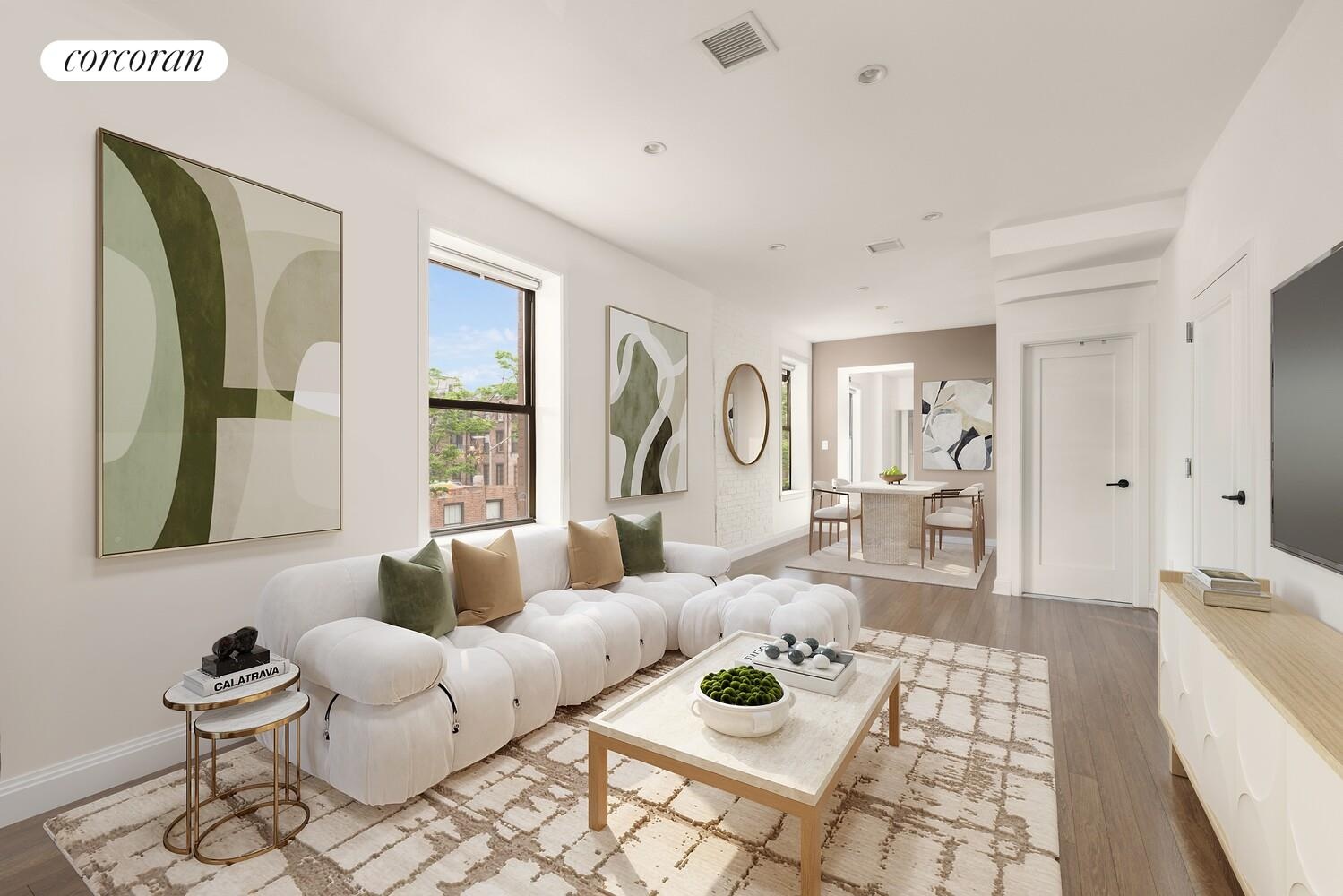 Welcome to 320 Macon Street, Set on one of Bed-Stuy's most coveted tree-lined blocks, this stunning three-bedroom, two-bathroom condominium is a rare find. Spanning 1,380 square feet across three exposures, Unit 3 at 320 Macon Street delivers an effortless blend of industrial character and contemporary sophistication that captivates from the moment you step inside.
