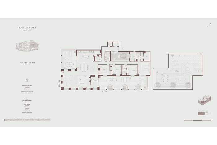 Introducing Penthouse 401, a truly exceptional five-bedroom residence with three-and-a-half bathrooms, offering 3,207 square feet of meticulously crafted interior living space and an extraordinary 2,949 square feet of private outdoor space, including a sprawling roof terrace designed for unparalleled indoor-outdoor living.