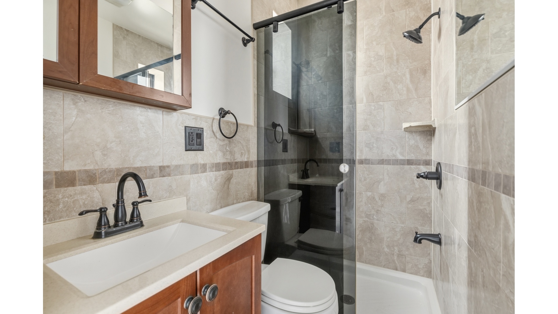 Upstairs, the tranquil primary suite offers peaceful treetop views, ample floor-to-ceiling closets, and a private en-suite bath, providing a sanctuary within this bustling city. The second bedroom, bathed in natural light, offers built-in storage and spaciousness that allows for both privacy and versatility. This flexible space opens to your own private rooftop oasis.