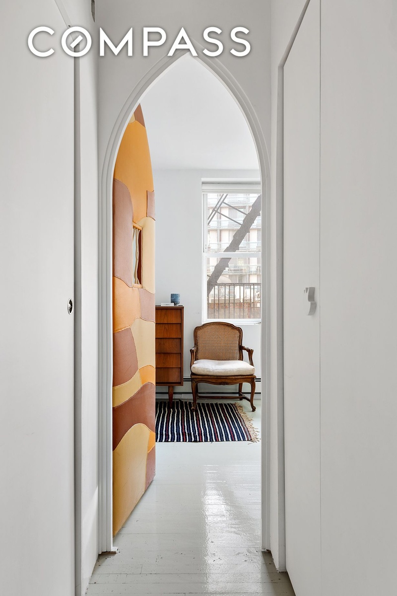 Neatly tucked away at the rear of a classic NoLita tenement building, access residence 3R of the Carriage House at 18 Spring Street through your lush shared garden. Past the leaf-strewn brick path and up to the third floor, this spacious, design-driven one-bedroom, one-bathroom home is a quiet reprieve from the bustle of the city so nearby.