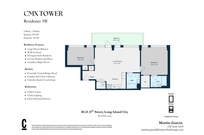 Introducing Residence #5W, a beautifully designed 2-bedroom home offering bright, open living and a private outdoor balcony ideal for entertaining or quiet relaxation. Floor-to-ceiling windows flood the residence with natural light, enhancing the warmth of the interiors and creating an airy, inviting atmosphere throughout.