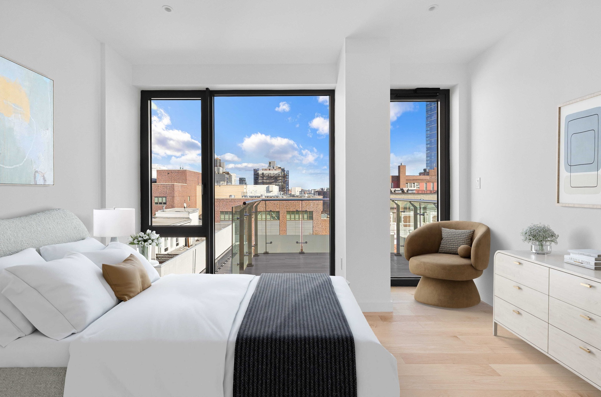 A defining feature of the home is its exceptional outdoor offering, with two private balconies that seamlessly extend the living space. Perfect for entertaining, outdoor dining, or simply unwinding in the open air, these outdoor spaces capture light and views from multiple exposures, offering a rare sense of openness and flexibility.