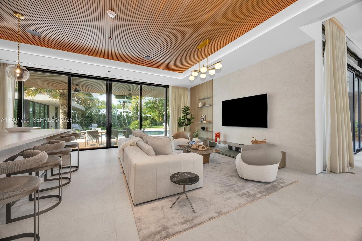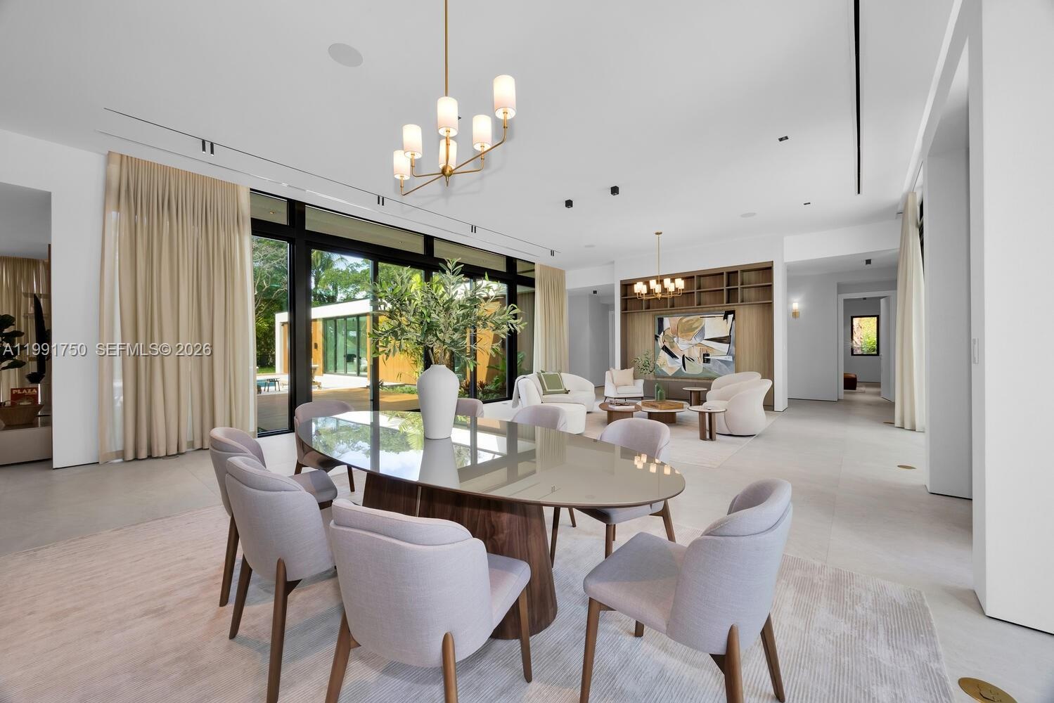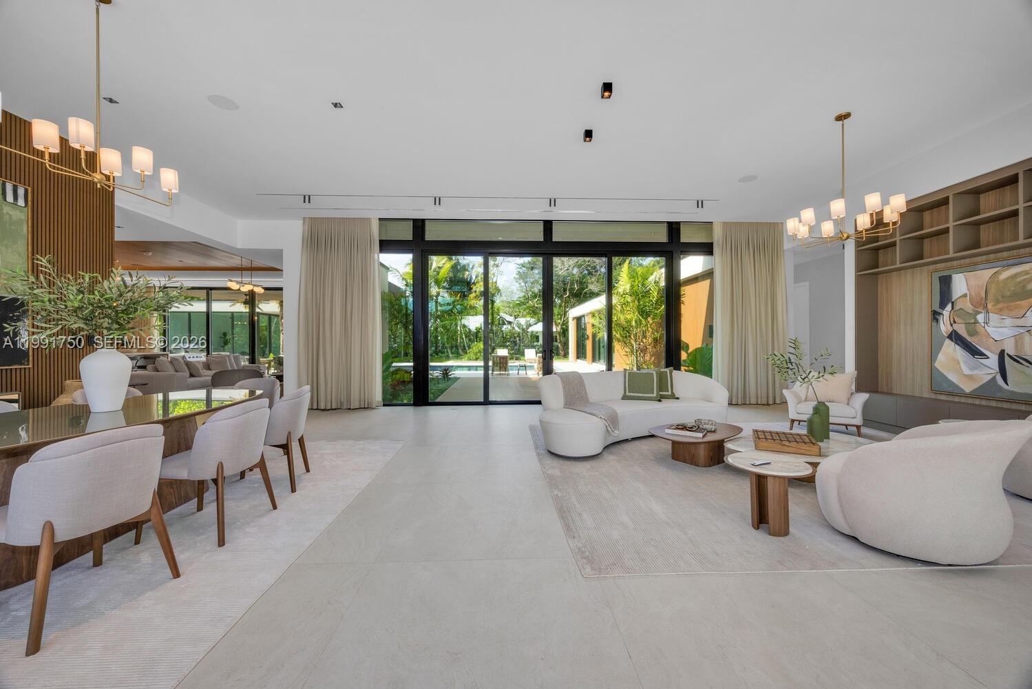 Outdoor living impresses with a heated pool, spa, summer kitchen, and expansive entertaining spaces. A full Control4 smart home system, electric blackout curtains, impact windows and doors, and a 2 car garage complete this turnkey estate in the heart of Pinecrest, offering a rare blend of design, scale, and functionality for today’s luxury buyer, with seamless indoor outdoor living throughout.