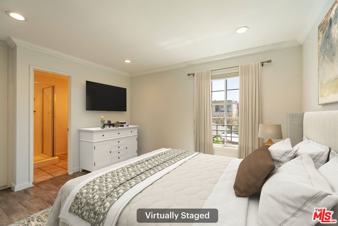 Newly remodeled 2-story townhouse! As you walk up the bourgainvilla landscaped pathway and enter thru the front door you will be engulfed with a bright and airy open floor plan. The gourmet kitchen with stainless steel appliances, quartz countertops and breakfast bar, opens into the expansive living/dining areas with a cozy fireplace and continues on thru the sliding doors to a spacious enclosed patio perfect for outdoor entertaining. Upstairs are 2 en-suite primary bedrooms and laundry area. Skylight on 2nd floor gives an abundance of natural light. In addition, there is a powder room, washer/dryer and recessed lighting. Two side-by-side parking spaces in gated underground parking with easy access to unit with two 6' x 5' x 3' storage spaces in front of each parking spot. Small 6-unit complex. Newer HVAC, paint, flooring, sliding doors and closets. Close to the beach, Main St., 3rd St. Promenade, Santa Monica Pier, Venice, Marina del Rey, Abbot Kinney,renowned dining, outstanding shopping and just a short drive to the freeways. Create your California lifestyle in one of Los Angeles' most desirable neighborhoods. Fireplace is decorative only, no credits will be given.