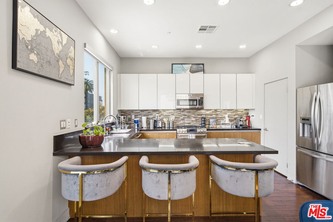 Welcome to 5911 Saturn Street, a beautifully designed multi-level contemporary FURNISHED lease in the desirable Mid-City / Beverlywood vicinity. This stunning detached home offers stylish, light-filled living in a prime central Los Angeles location. Featuring 3 bedrooms, 3 bathrooms, and approximately 2,000 square feet, the home is thoughtfully designed with soaring ceilings, hardwood floors, expansive windows, and modern imported finishes throughout. The open-concept main level includes generous living and dining spaces and a sleek kitchen with stainless steel appliances, abundant storage, kitchen pantry and a breakfast bar. A private guest suite adds flexibility, while the outdoor patio extends the home's indoor-outdoor lifestyle. Crowning the home is a private rooftop deck, an exceptional outdoor escape where you can unwind or entertain while taking in sweeping views from Century City to Downtown Los Angeles. Quietly situated on a residential street, yet just moments from local dining, shopping, neighborhood favorites, and convenient access to the Westside, Downtown, and major freeways, this is modern lease living at its best.