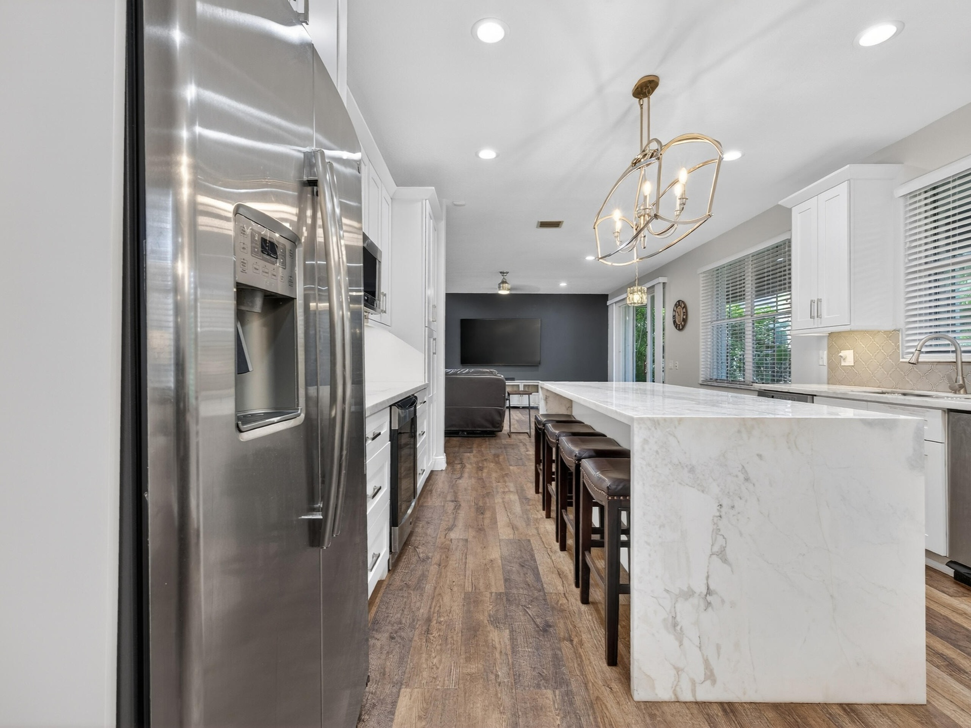 Fully remodeled corner-lot home in the private cul-de-sac of Penta Court! This move-in-ready residence features a bright, open layout enhanced by a Velux light tunnel bringing in natural solar light. Stunning white kitchen with modern finishes flows into spacious living areas—perfect for entertaining. Energy-efficient upgrades include a propane tank system and tankless water heater, helping reduce electric bills. Updated flooring, lighting, and beautifully renovated bathrooms throughout. Enjoy a private backyard with mature mango and avocado trees. Located around a quiet court with a central play area, ideal for a true neighborhood feel. Zoned for top-rated schools: Cypress Bay High School, Falcon Cove Middle, and Manatee Bay Elementary Schools. If no realtor is representing the buyer, TEXT the listing agent to connect you with our prefer Lender, and learn about discounts and opportunities for direct buyers.