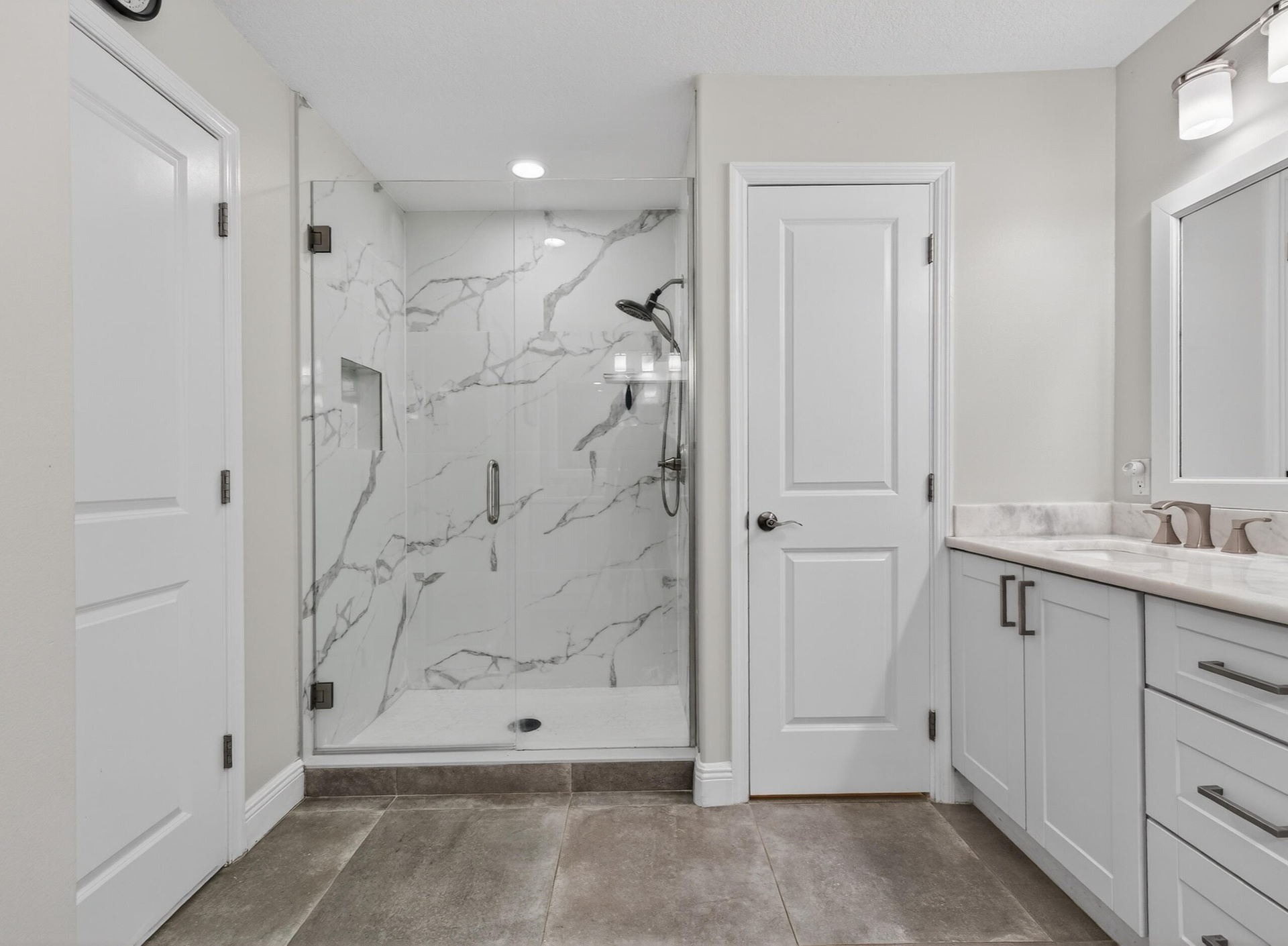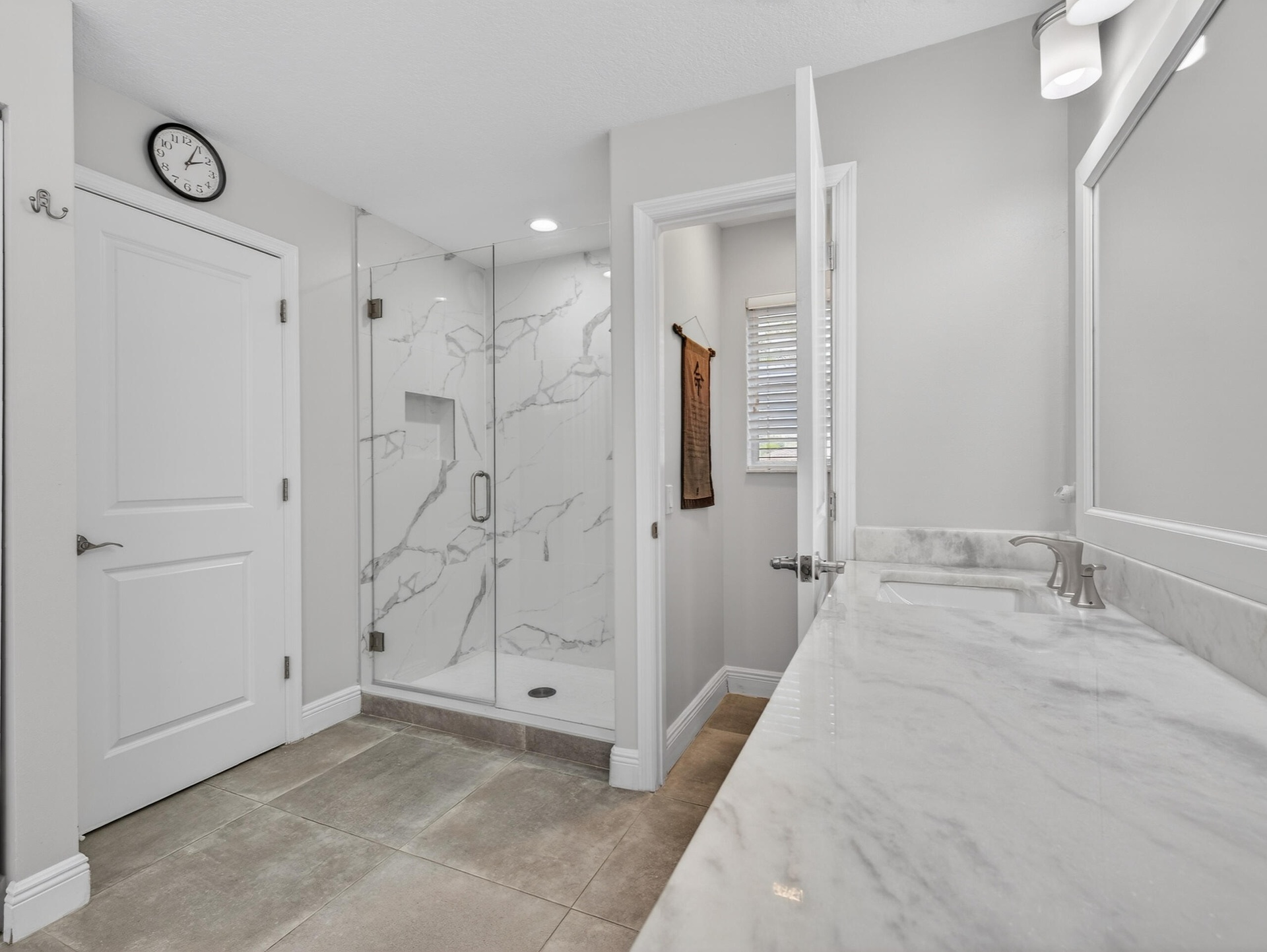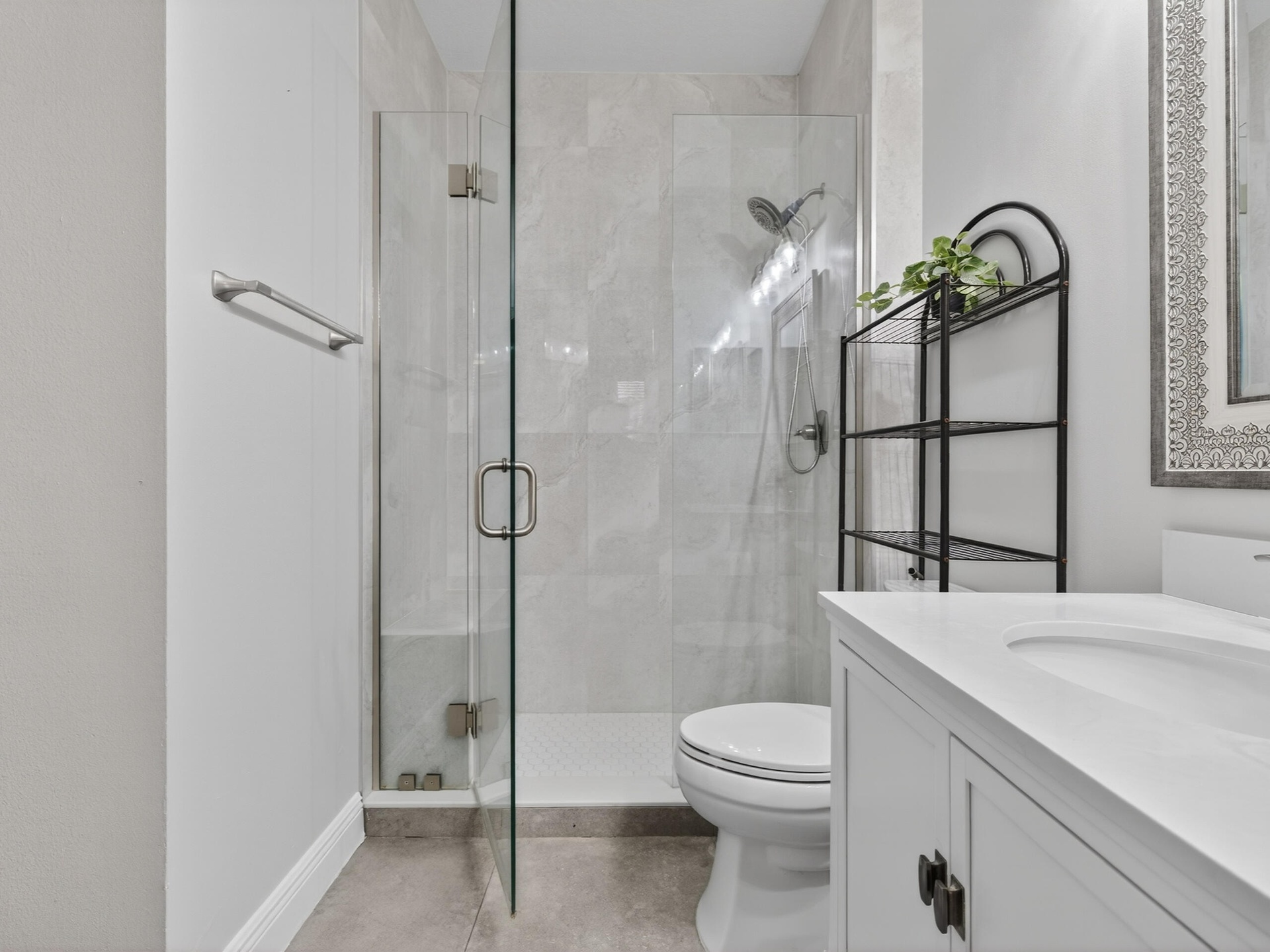 - Primary bathroom, fully updated, with plenty of space and storage.