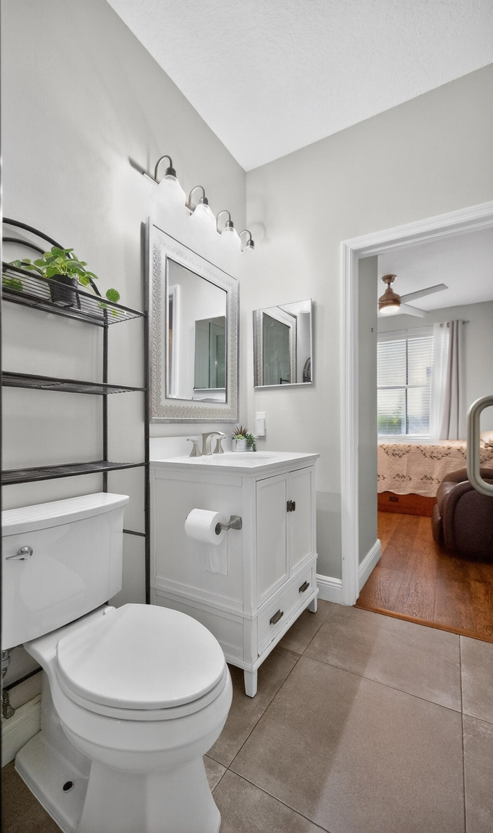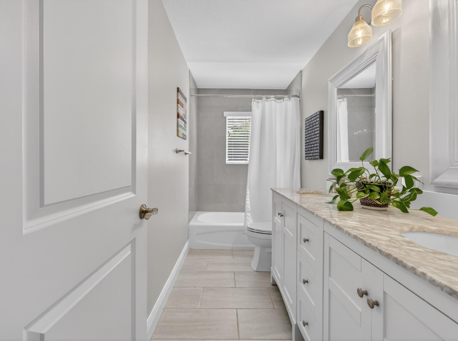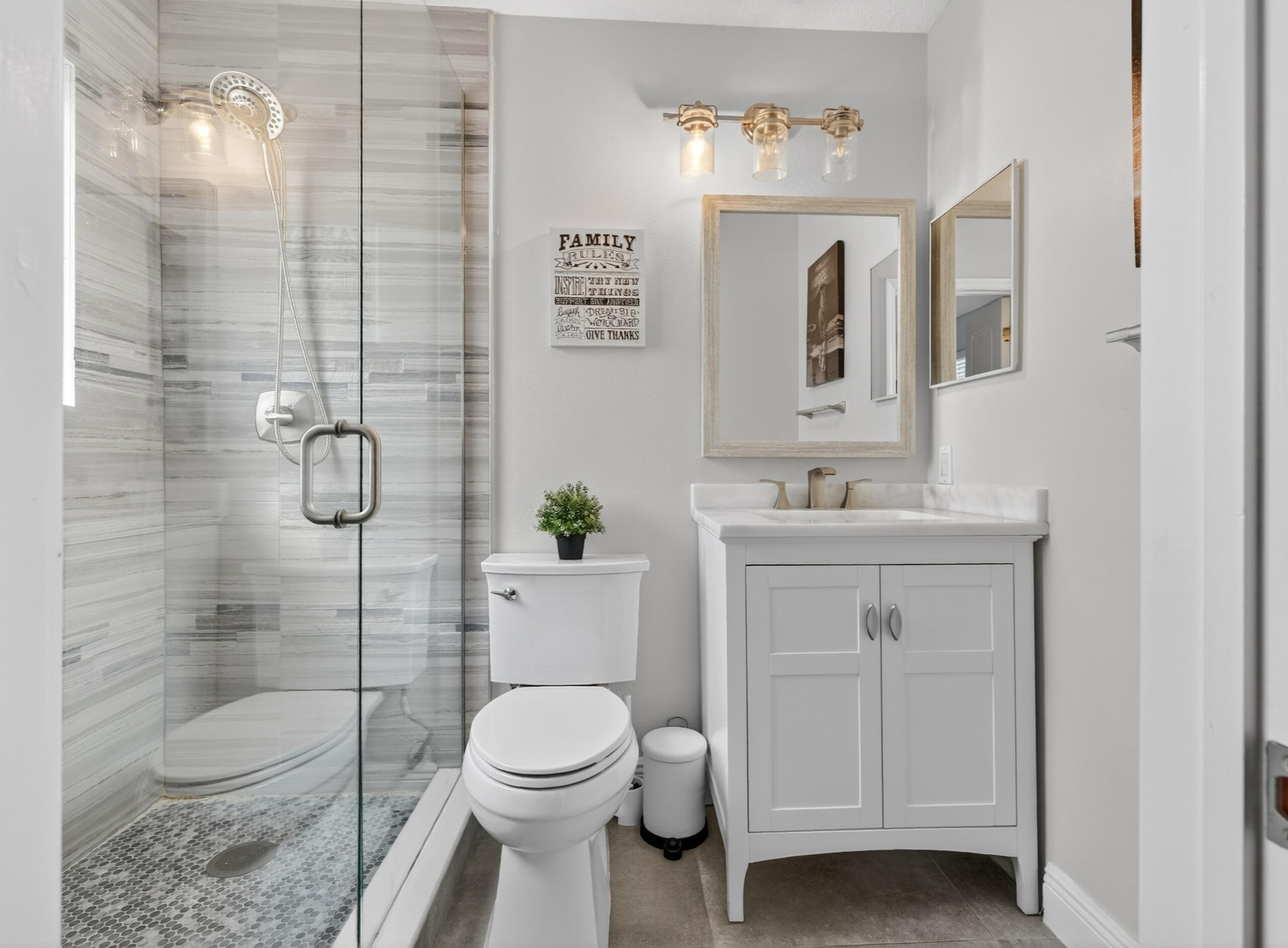 - Primary bathroom, fully updated, with plenty of space and storage.