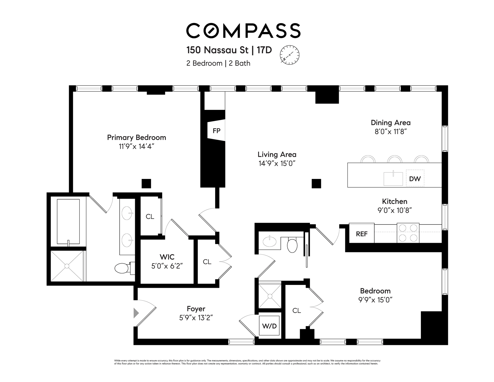 Residence 17D at 150 Nassau Street is a light-filled two-bedroom, two-bath condominium defined by a seamless layout designed for modern living.