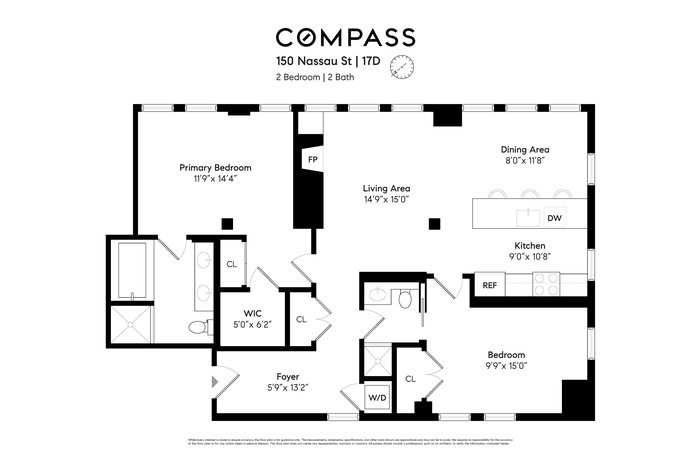 Residence 17D at 150 Nassau Street is a light-filled two-bedroom, two-bath condominium defined by a seamless layout designed for modern living.