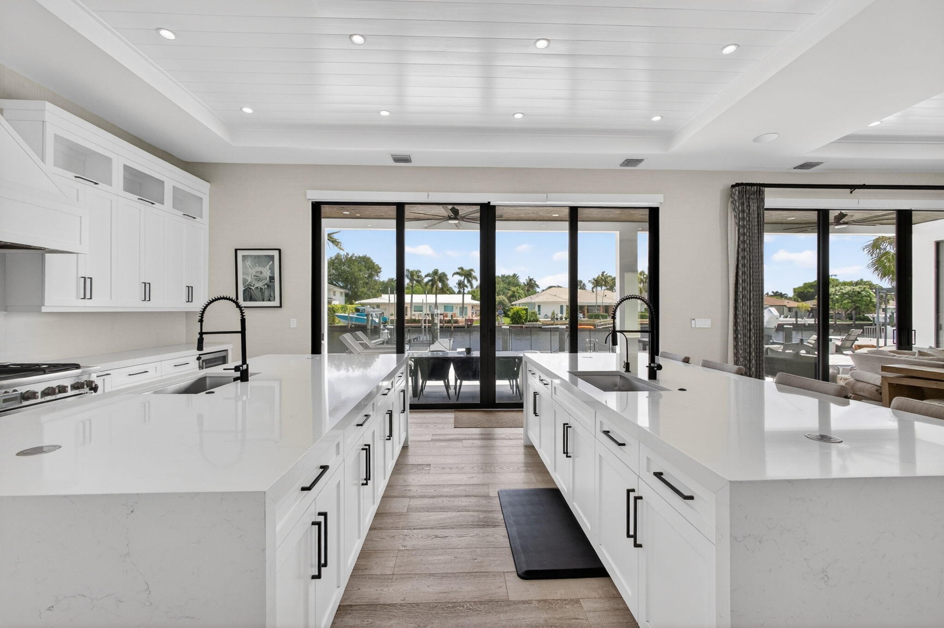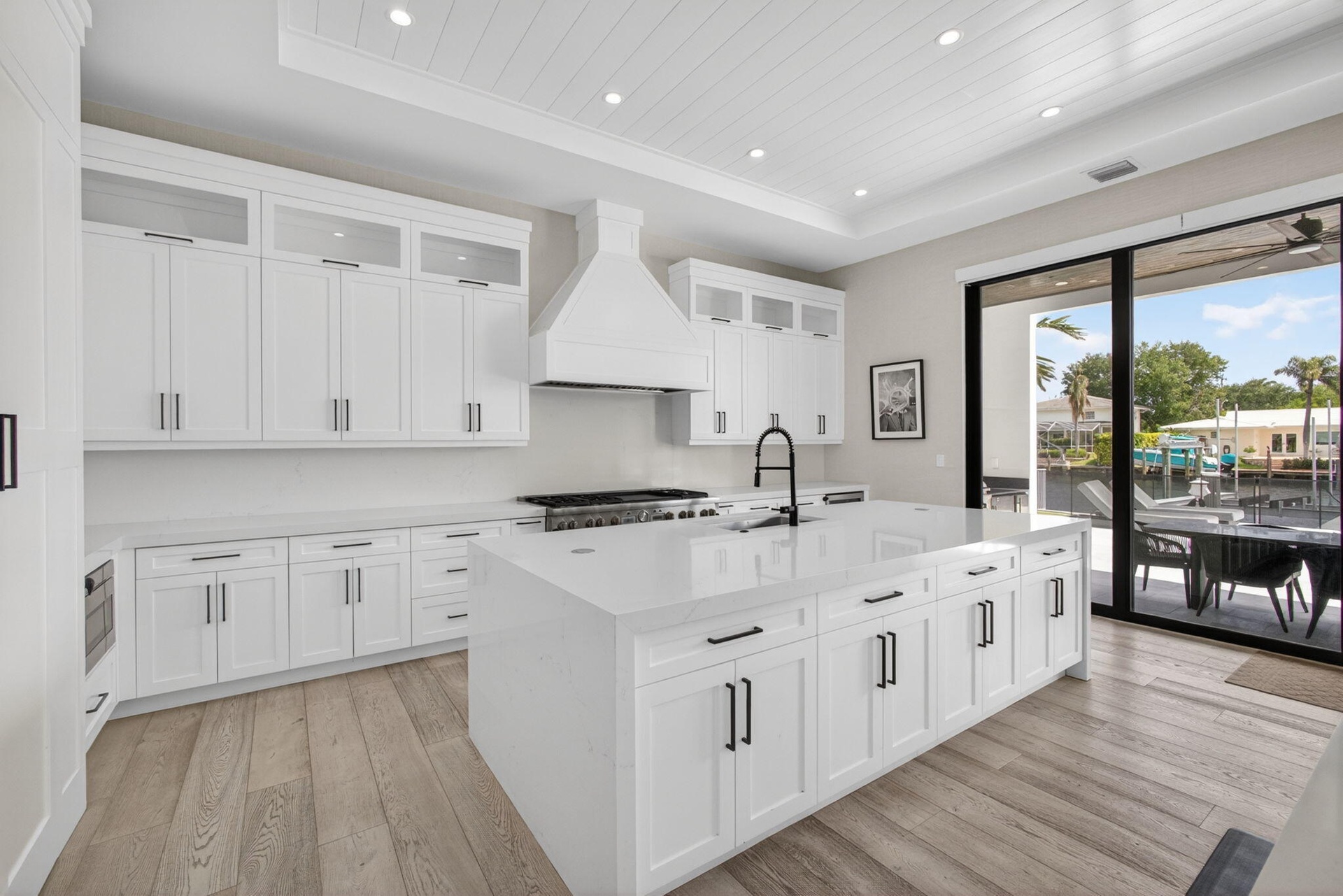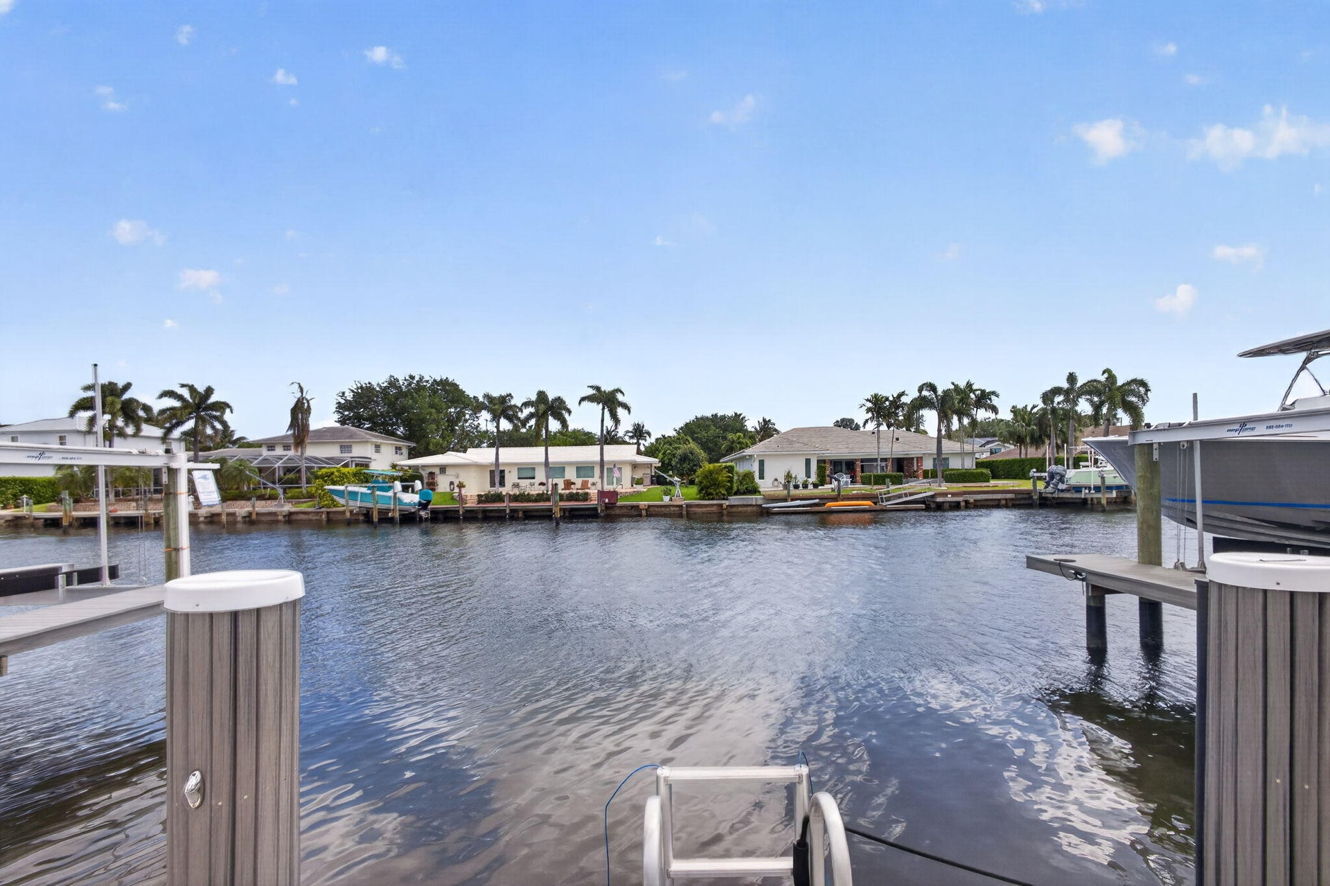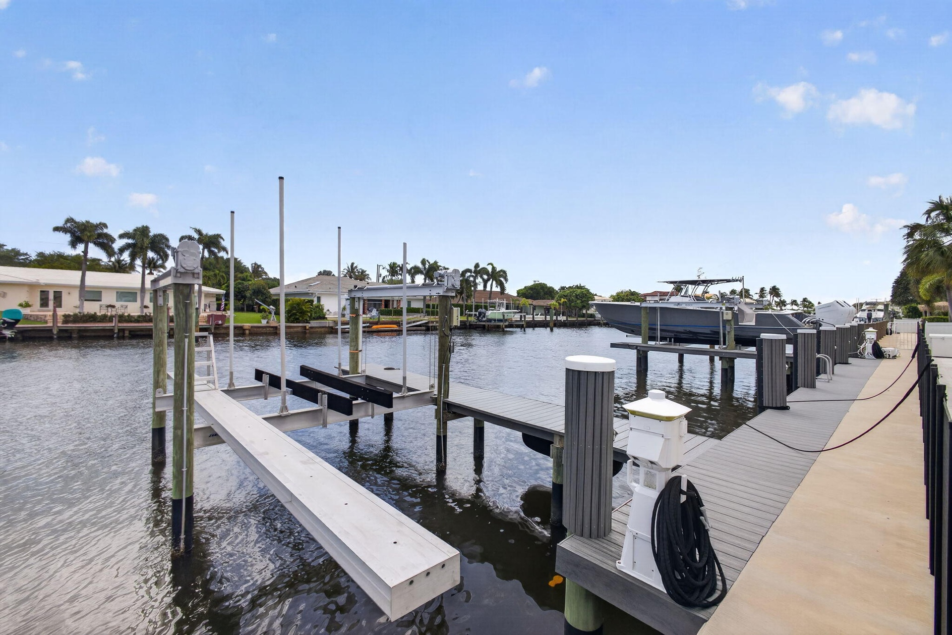 Experience the pinnacle of waterfront living from this exceptional two-story Intracoastal estate, offering over 5,300 square feet of exquisitely designed living space. Privately situated on an expansive .28-acre lot, this remarkable "boater's dream" boasts 90 feet of direct waterfront, a private dock, dual lifts, and unobstructed access to open water with no fixed bridges. Newly constructed in 2021, this custom residence was thoughtfully designed with uncompromising craftsmanship and a seamless blend of modern sophistication and relaxed coastal elegance. The open-concept floor plan captures breathtaking water views from nearly every room and features 4 bedrooms plus a den/office, 5 full baths, and two luxurious primary suites—ideal for multigenerational living or hosting in style. A private elevator adds both convenience and refinement. At the heart of the home, the expansive chef's kitchen is a statement of both form and function, showcasing custom cabinetry, premium Thermador appliances including a double oven, six-burner gas range, two dishwashers, dual quartz islands, and a spacious walk-in pantry—perfectly suited for both everyday living and grand-scale entertaining. The primary suite is a true sanctuary, offering an enormous balcony (accessible by all 3 upstairs bedrooms) with sweeping NPB Waterway views, 2 massive walk-in closets with California Closet built-ins, and custom ceiling detail that adds warmth and architectural distinction. The spa-inspired bath is nothing short of extraordinary, featuring a grand double-entry shower, oversized soaking tub and elegant his-and-her vanities, and 2 water closets. An impressive array of designer finishes and enhancements elevate the home throughout, including wide-plank wood flooring, custom built-ins, curated wall coverings, a striking glass-railed staircase, dual laundry rooms, tankless water heater, whole-house generator, impact windows and doors throughout, reverse osmosis water system, custom lighting, and California Closets in every room—including the garage. Step outside to your private resort-style oasis. Framed by sandblasted marble pavers, the outdoor living space is nothing short of spectacular, featuring an oversized infinity-edge pool with spa and sun shelf, artificial turf, covered patio with tongue-and-groove Synergy wood ceilings, outdoor shower, and a fully equipped summer kitchen. The dock is outfitted with two boat lifts (16,000 lb. and 24,000 lb.) and electric pedestals with both 30-amp and 50-amp service. This extraordinary North Palm Beach Waterway residence offers a lifestyle beyond compare—where luxury, comfort, and world-class boating converge.