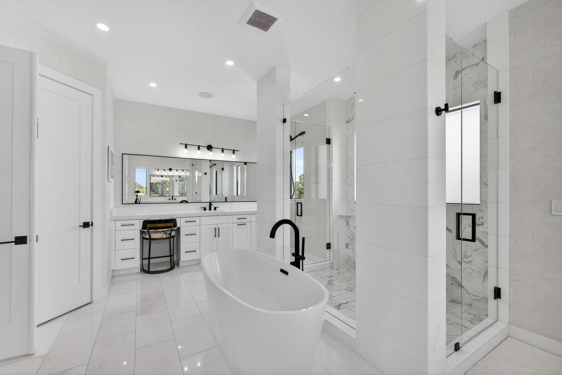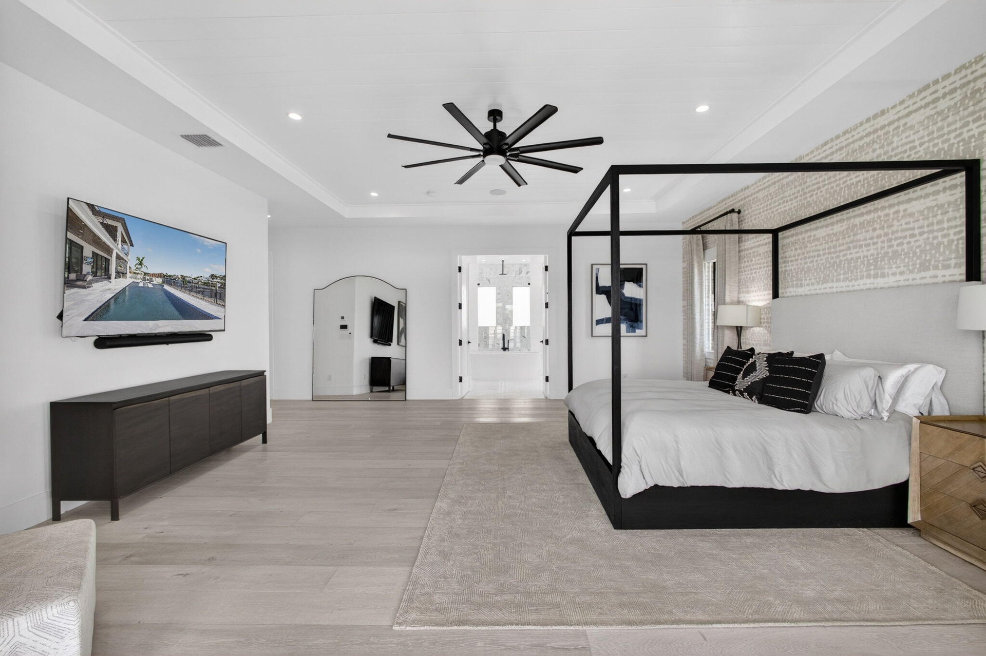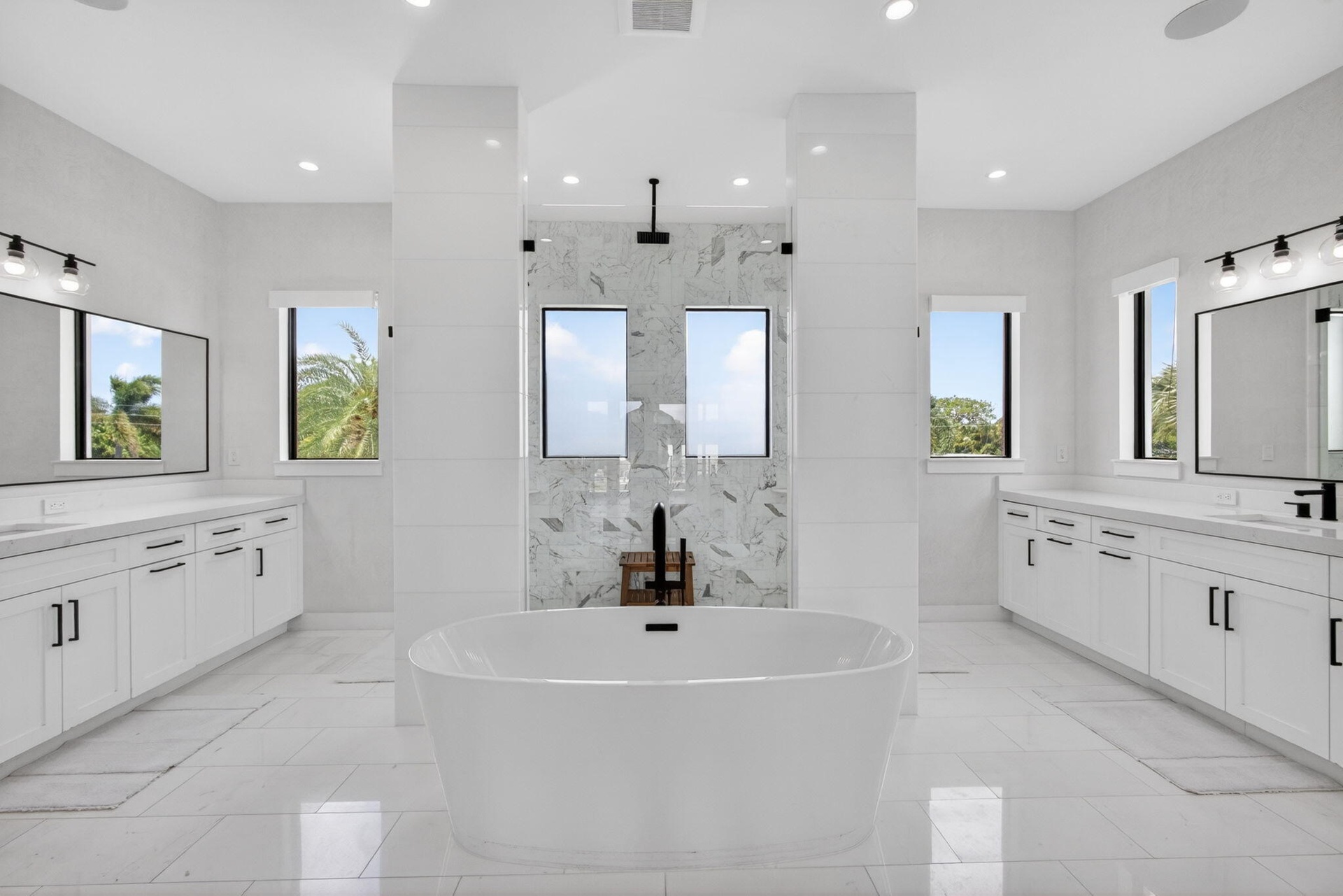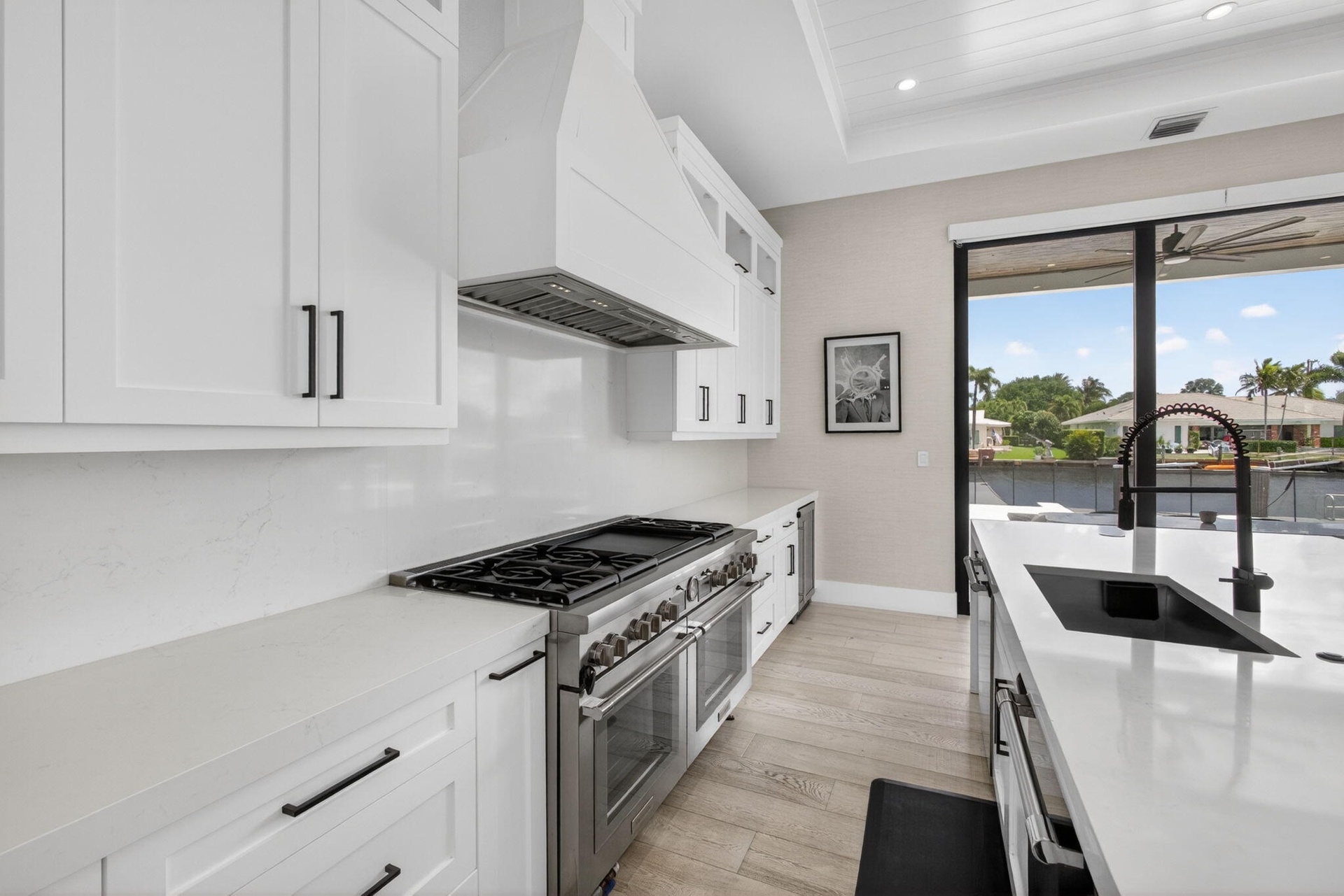 Experience the pinnacle of waterfront living from this exceptional two-story Intracoastal estate, offering over 5,300 square feet of exquisitely designed living space. Privately situated on an expansive .28-acre lot, this remarkable "boater's dream" boasts 90 feet of direct waterfront, a private dock, dual lifts, and unobstructed access to open water with no fixed bridges. Newly constructed in 2021, this custom residence was thoughtfully designed with uncompromising craftsmanship and a seamless blend of modern sophistication and relaxed coastal elegance. The open-concept floor plan captures breathtaking water views from nearly every room and features 4 bedrooms plus a den/office, 5 full baths, and two luxurious primary suites—ideal for multigenerational living or hosting in style. A private elevator adds both convenience and refinement. At the heart of the home, the expansive chef's kitchen is a statement of both form and function, showcasing custom cabinetry, premium Thermador appliances including a double oven, six-burner gas range, two dishwashers, dual quartz islands, and a spacious walk-in pantry—perfectly suited for both everyday living and grand-scale entertaining. The primary suite is a true sanctuary, offering an enormous balcony (accessible by all 3 upstairs bedrooms) with sweeping NPB Waterway views, 2 massive walk-in closets with California Closet built-ins, and custom ceiling detail that adds warmth and architectural distinction. The spa-inspired bath is nothing short of extraordinary, featuring a grand double-entry shower, oversized soaking tub and elegant his-and-her vanities, and 2 water closets. An impressive array of designer finishes and enhancements elevate the home throughout, including wide-plank wood flooring, custom built-ins, curated wall coverings, a striking glass-railed staircase, dual laundry rooms, tankless water heater, whole-house generator, impact windows and doors throughout, reverse osmosis water system, custom lighting, and California Closets in every room—including the garage. Step outside to your private resort-style oasis. Framed by sandblasted marble pavers, the outdoor living space is nothing short of spectacular, featuring an oversized infinity-edge pool with spa and sun shelf, artificial turf, covered patio with tongue-and-groove Synergy wood ceilings, outdoor shower, and a fully equipped summer kitchen. The dock is outfitted with two boat lifts (16,000 lb. and 24,000 lb.) and electric pedestals with both 30-amp and 50-amp service. This extraordinary North Palm Beach Waterway residence offers a lifestyle beyond compare—where luxury, comfort, and world-class boating converge.