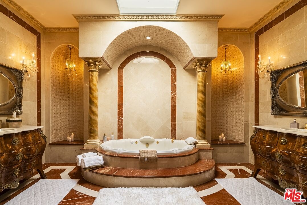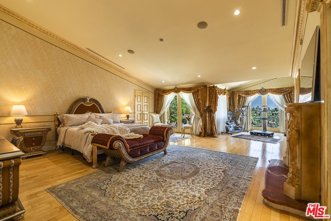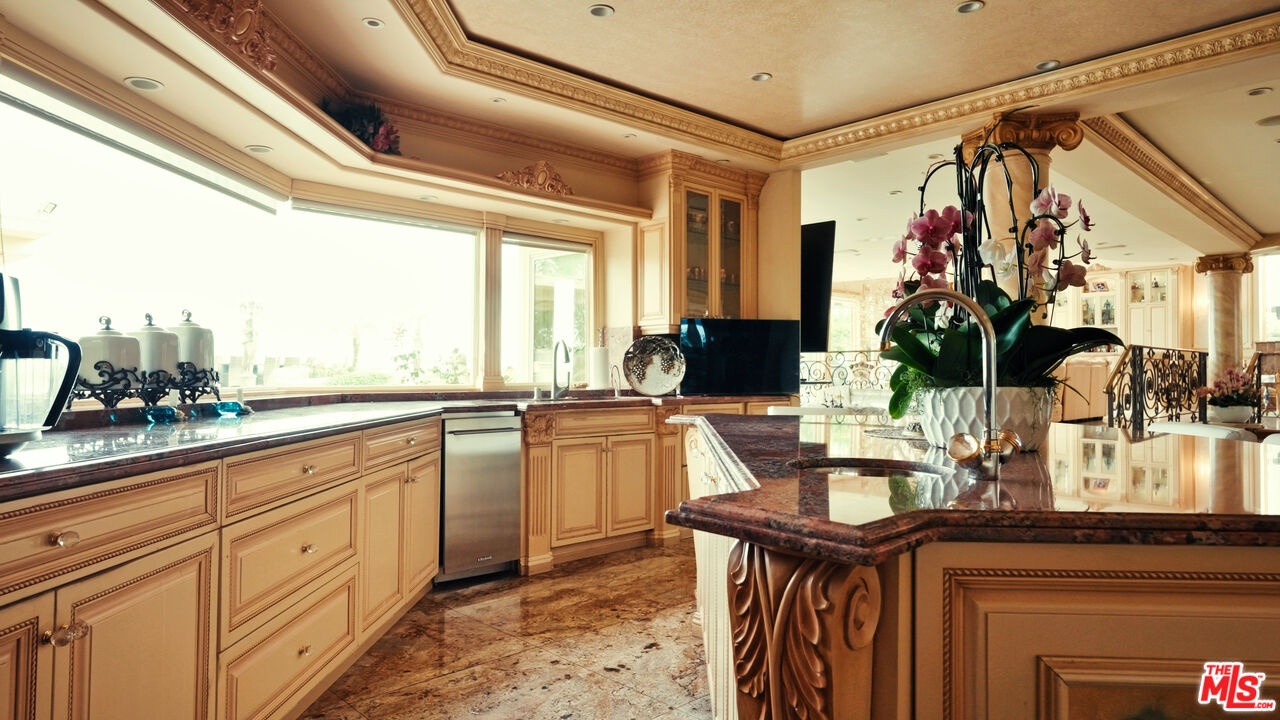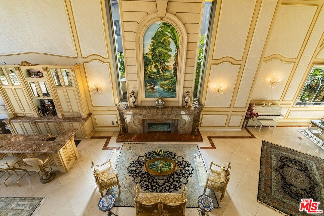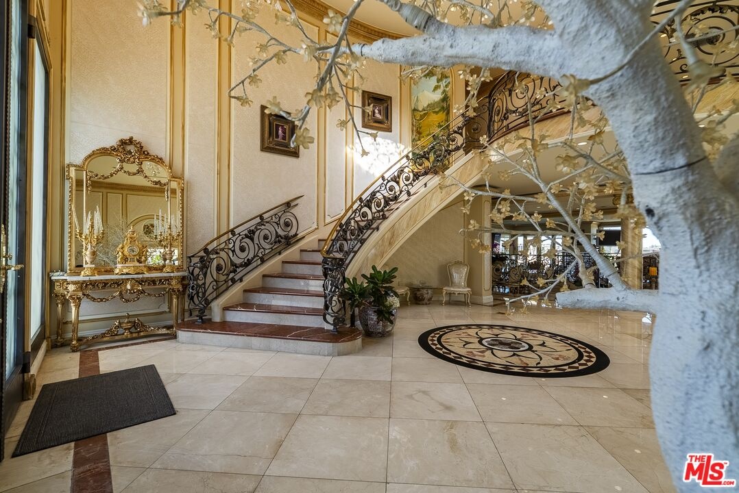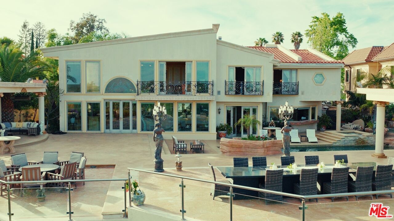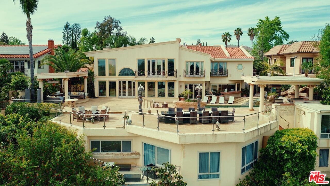 2716 Casiano Drive Private Regency-Inspired Estate with Ocean & City Views. Welcome to 2716 Casiano Drive, a grand Regency-inspired residence offering exceptional privacy, security, and sweeping city and ocean views. Tucked within an exclusive gated enclave, this elegant estate combines timeless European design with the tranquility of a secluded hillside setting. This home offers a variety of ways to enjoy every moment. Whether you're hosting guests for a delightful meal in the gourmet kitchen or soaking up the sun by the pool, there's something for every mood. Spend a romantic evening with a loved one, taking in the sweeping views of the ocean and lush green hills, or host a grand gathering in absolute privacy. A dramatic foyer with soaring 19-foot ceilings opens to a stately entry hall, leading to beautifully appointed living spaces including a Versailles-inspired living room, formal dining room, intimate breakfast area, and an full bar. Detailed moldings, high ceilings, and steel-framed windows fill the home with natural light while framing stunning views.Upstairs, the expansive primary suite provides a peaceful retreat with sitting areas, a spacious bedroom, marble bath with a soaking tub, and generous walk-in closets. Four additional ensuite bedrooms, some featuring French doors opening to private balconies, offer comfort and elegance for family or guests. Surrounded by lush landscaping, the secluded backyard creates a resort-like escape with a sparkling pool and spa, cascading waterfall, and covered cabana overlooking city and ocean vistas. The grounds also feature lots of fruit trees, enhancing the estate's beauty and privacy. Additional highlights include a private studio with a full bath, extra storage, a direct-entry two-car garage, and secure gated access, offering a rare combination of luxury living, privacy, and peace of mind in Los Angeles.