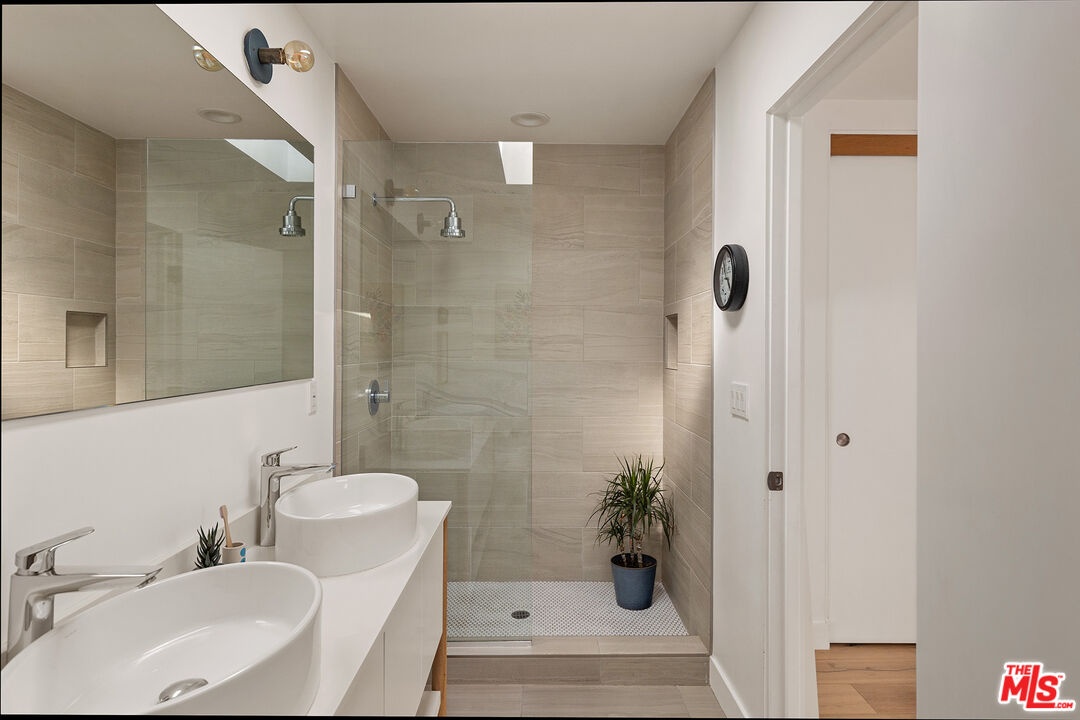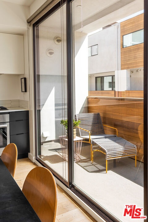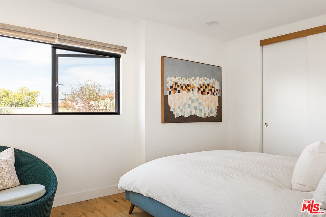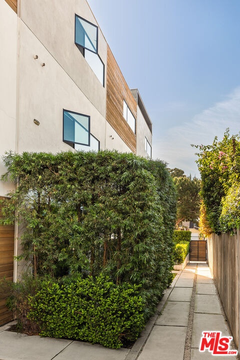 South of Wilshire, a few blocks west of Western, this highly-desirable property is centrally located between Hancock Park and Koreatown, close to the Wiltern Theatre, the Marciano Art Foundation, and The Ebell, here in the historic core of the city. Part of a boutique collection of ten single family homes in this small lot subdivision, the architecture reads as a series of interlocking volumes punctuated by precisely placed apertures that frame light, greenery, and neighborhood context. A disciplined, contemporary composition of concrete, wood, and glass, this residence balances clarity of form with a warm, livable interior. Inside, the palette is restrained and intentional. Wide-plank oak floors run throughout, grounding a sequence of bright, well-proportioned spaces. Bedrooms are quiet and minimal, with horizontal windows that bring in soft, even light while maintaining privacy. Bathrooms follow suit - crisp, pared back, and executed with a focus on proportion and material continuity. The main living space extends outward to the patio through a large sliding opening, dissolving the boundary between inside and out. A private patio at ground level, screened by dense planting, functions as an outdoor room equally suited for morning coffee or evening unwinding. What distinguishes the home is its clarity. There is no excess here - just thoughtful decisions, well resolved. The result is a space that feels calm, deliberate, and enduring.