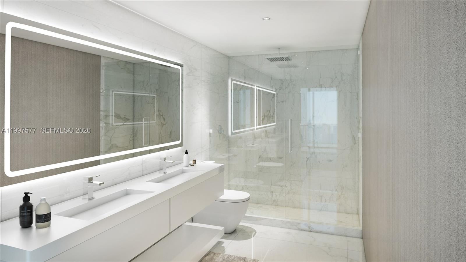Residence 202 is a thoughtfully designed 1-bedroom, 1.5-bathroom home spanning 891 SF, offering an ideal blend of comfort and functionality. This well-proportioned residence features an open-concept living and dining area, complemented by a modern kitchen. The spacious primary suite includes a walk-in closet and en-suite bathroom with double vanity and an oversized mirror with LED light, while the additional powder room adds convenience for guests - a rare feature in a one-bedroom layout. Floor-to-ceiling windows bring in natural light, creating a bright and inviting atmosphere, while the private balcony extends the living space outdoors.