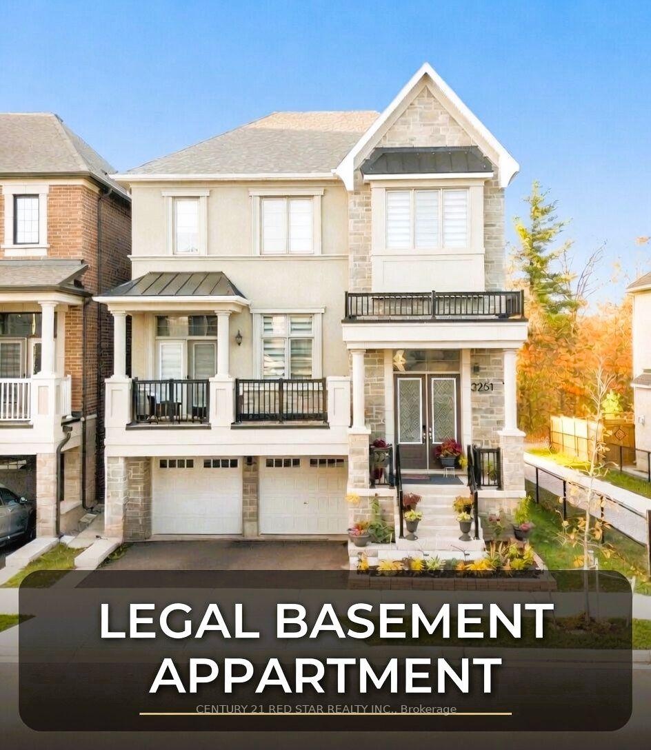 EXECUTIVE Family Home on a Rare RAVINE Corner like Lot in Prestigious North Oakville with impressive 5+2-bedroom plus office at main floor, 4+2 bathroom detached home with 4375 sq ft finished area on a desirable 39.6 x 91.88 ft lot in the sought-after Uptown Core community. This BRIGHT and SPACIOUS home is unique in the area and offers the perfect blend of luxury, functionality, and privacy with a fully finished walk-out LEGAL BASEMENT APARTMENT adds significant living space with its own 2 bedrooms and 2 washrooms - ideal for INCOME potential. The main levels boast soaring 10 ft ceilings and 9 ft ceilings upstairs, creating an open-concept layout flooded with NATURAL LIGHT. The gourmet kitchen is a highlight with a massive center island, premium quartz countertops, stainless steel appliances, and a large walk-in pantry, walkout deck. A convenient main-floor office is perfect for work-from-home needs. Hardwood flooring runs throughout the home for a clean, modern look and easy maintenance. Upstairs, the generously sized bedrooms include a LUXURIOUS PRIMARY SUITE with a SPA-like ensuite featuring a standalone tub and oversized walk-in closet. This home stands out beside a catwalk to TRAIL, which positions it as a functional corner lot, offering extra privacy and appeal. Best of all, it backs onto a RAVINE - enjoy peaceful, treed views and a sense of being nestled in nature while remaining close to everything. A rare opportunity to own an executive home with premium finishes, versatile living space, and an exceptional ravine setting in one of Oakville's most desirable areas EXCELLENT SCHOOLS. This property will not last long - schedule your private viewing today!