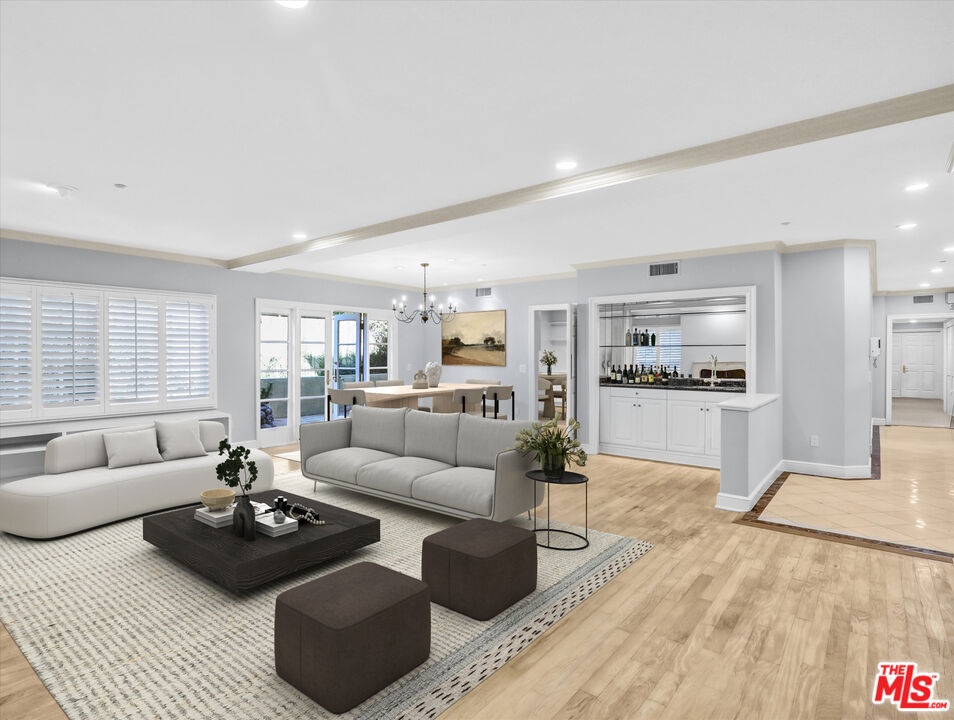 Presenting a perfect flip opportunity for a developer or an end user to bring their contractor! This spacious 2,400-square-foot, first-floor three-bedroom, 3.5-bath condominium in the Beverly Spalding sits within close proximity of the prestigious Beverly Hills High School and the Golden Triangle in Beverly Hills, Westfield Century City Mall, and Roxbury Park. Double French doors lead to two generous outdoor spaces. All bedrooms have en-suite bath. This charming condo has been upgraded with new flooring throughout. Large living room with fireplace. Separate dining area, great kitchen, huge primary suite with fireplace, and spa tub. With in-unit laundry, two side-by-side garage parking spots, and unbeatable proximity to world-class shopping, dining, and amenities all in the heart of 90210. Plus, it falls within the highly coveted Beverly Hills School District with access to premier city services, making it the epitome of luxury living in Los Angeles. Some photos are virtually staged.