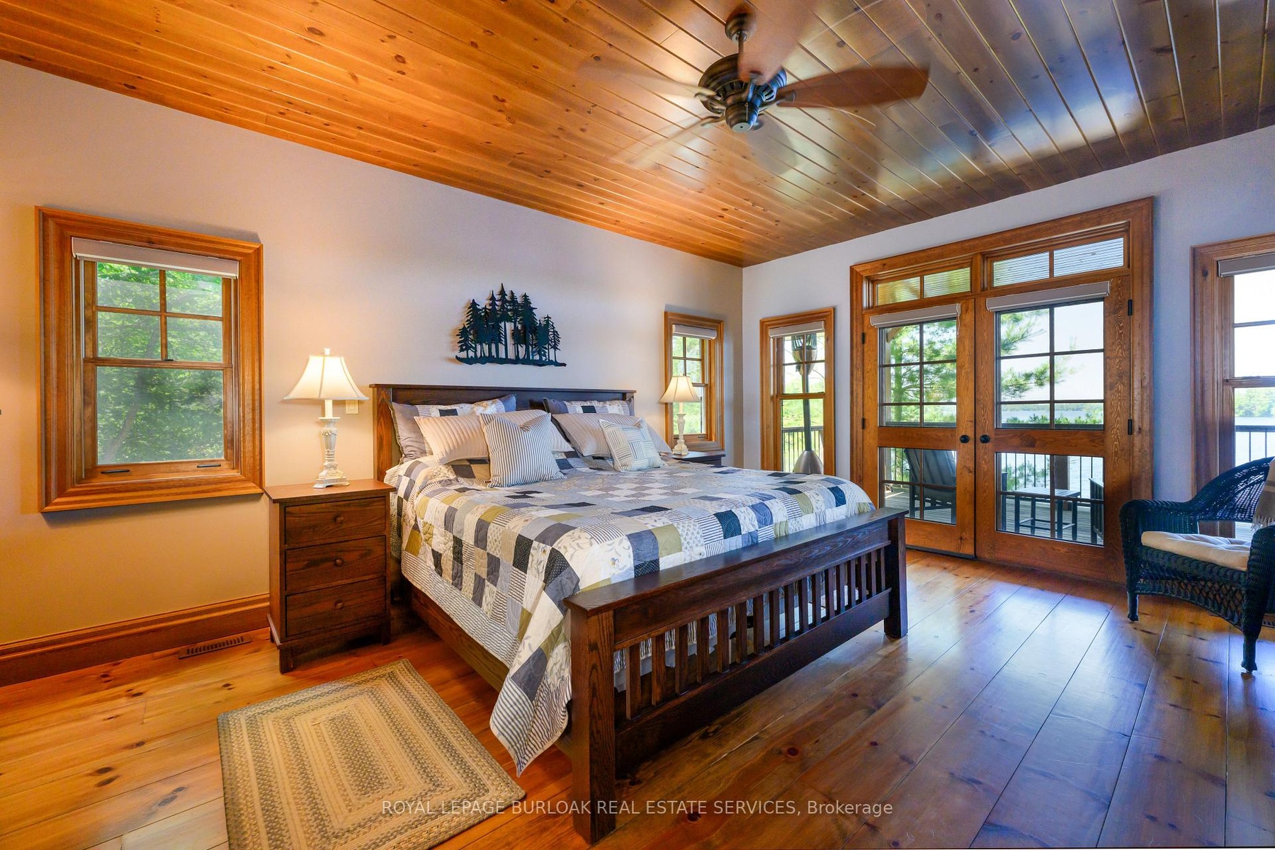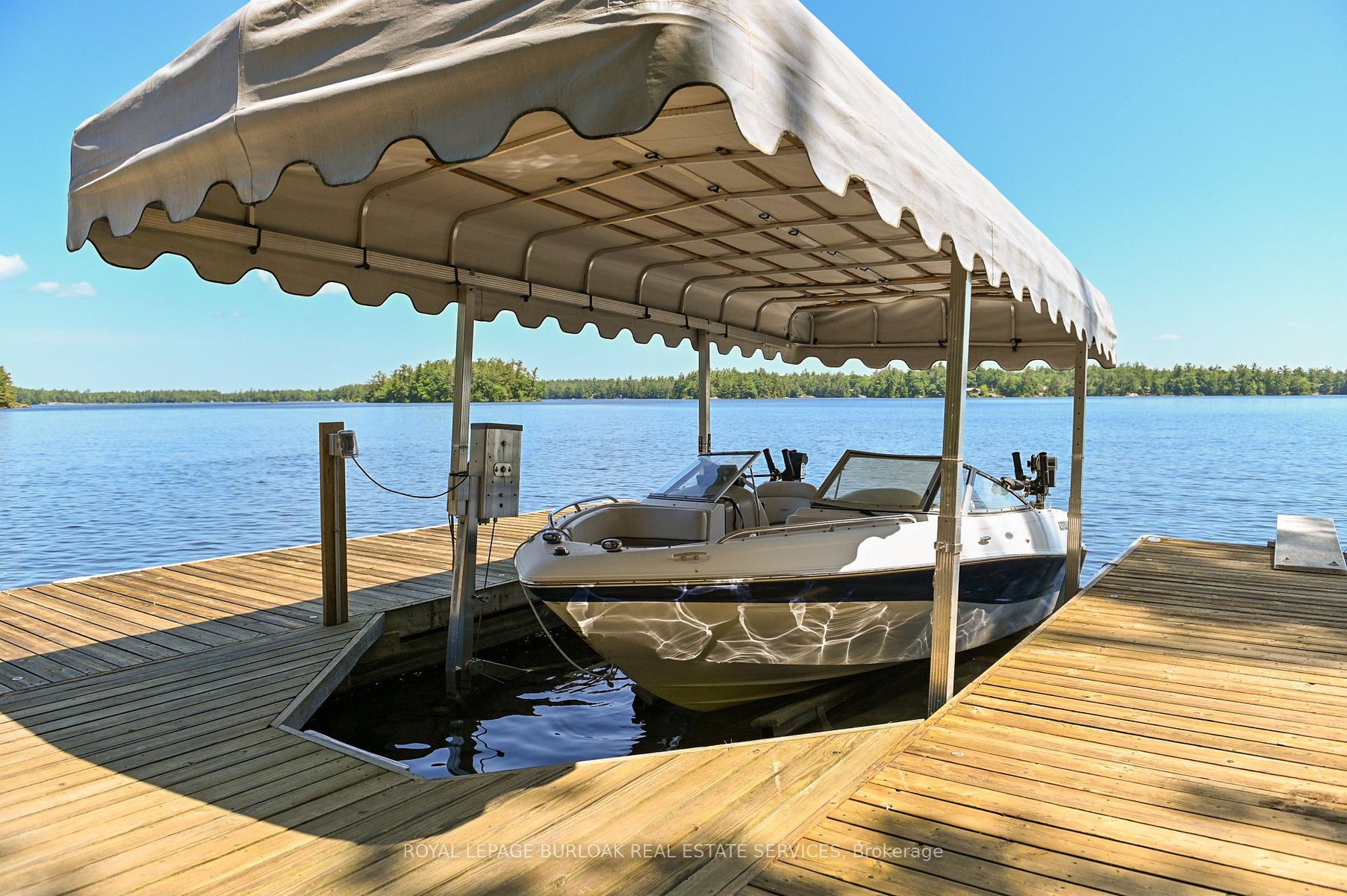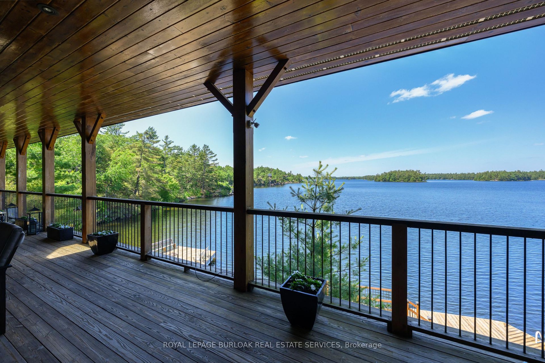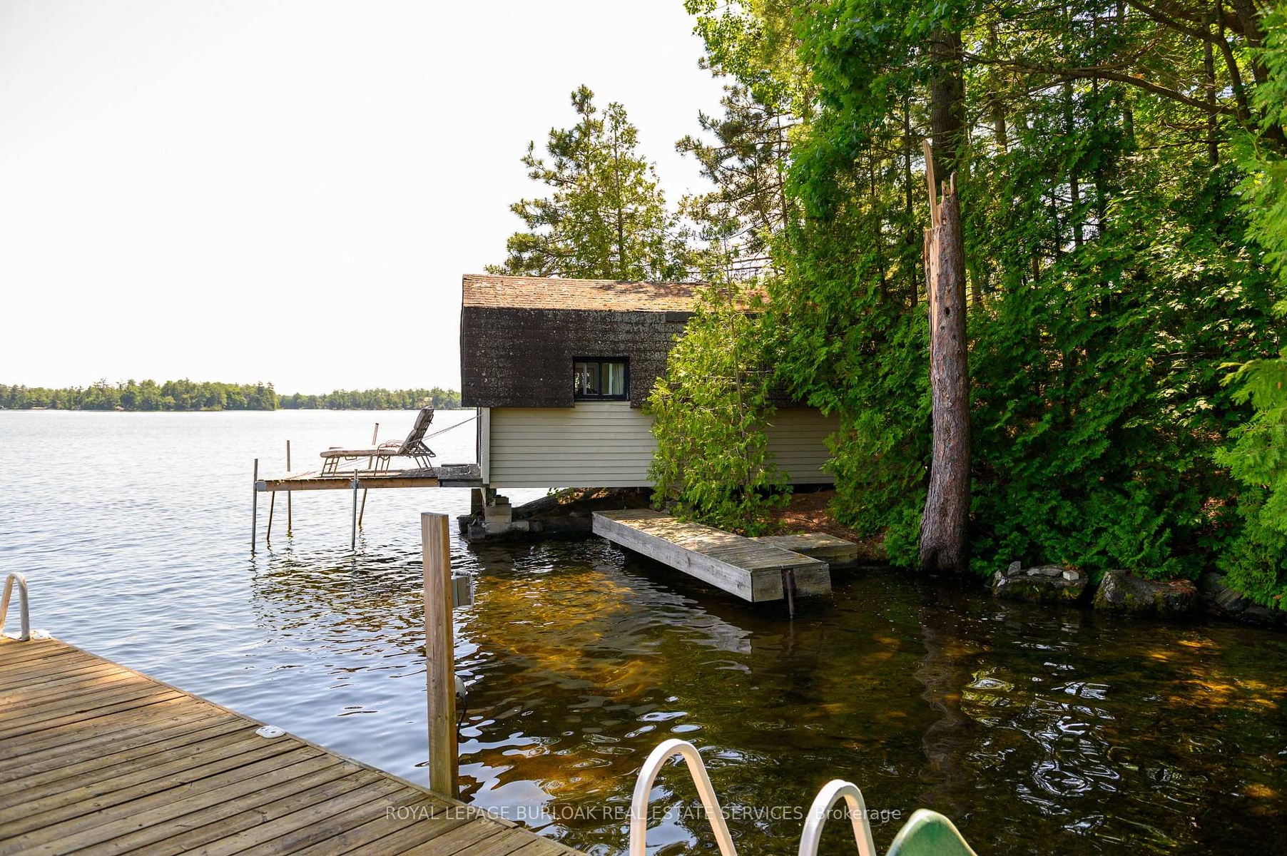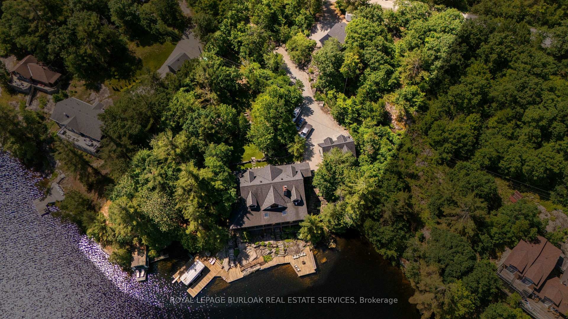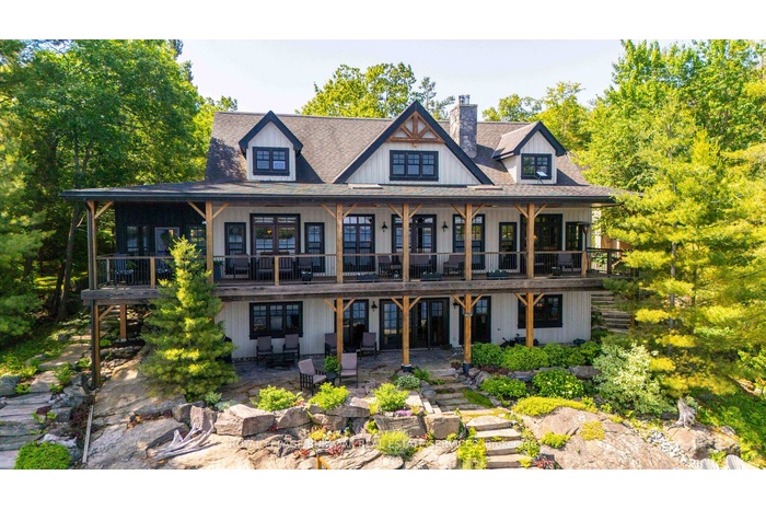 Remarkable Muskoka lakeside retreat on Six Mile Lake, on year-round municipal road, only 90 minutes from GTA. Impressive custom-build w/stunning lake views may be most prestigious property on "the mile." Expansive 333ft of prime, deep waterfront, 1.66 acres w/mature trees & privacy, & absolute show-stopper 6000 sqft, 6 bedrm lake house w/gorgeous pine detail T/O. Open-concept main lvl overlooks lake & accesses the 68x12 covered deck, & includes the kitchen w/quartz CTs & 11ft centre island w/breakfast bar, great rm w/granite stone F/P & 22ft vaulted ceiling, spacious dining rm, main floor primary bedrm w/6pce ensuite, Muskoka rm,2pce bath, & mud rm/laundry rm. 2nd lvl has a den/office, & 2 very large bedrms that could be converted to 4 if desired. Walk-out lower lvl offers a family rm w/granite stone F/P, bar area w/seating for 6, 3 more large bedrms, 8pce bath, & sliding doors to patio & lake. Red Pine &slate floors T/O, 10ft ceilings & in-floor heating on main & lower lvl, pine ceilings, & post &beam construction & ICF foundation, all display the care in this magnificent homes design. Exterior offers an oversized double garage w/600sqft man cave/loft w/heat & AC, triple garage w/2 insulated & heated, & another single garage at side of property, plus parking for 20 more on driveways. Clear & pristine waterfront 6-12ft deep off docks, + bonus shallow wading area at side. 1500sqft of decks & docks along water, including U-shaped boat slip engineered to support a boathouse, plus 1400 sqft of covered deck & patio overlooking the water, & 450 sqft of deck at back of home, totalling over 3350 sqft of decking & patio. NE exposure at waterfront provides beautiful sunrises &sunsets. 280 sqft bunkie at water's edge. Systems include geothermal heating/cooling, drilled well w/complete water system, bio-filter septic system, on-demand water heater, & generator. Contact listing Realtor or any Realtor for floor plans, boathouse drawings, & for full write-up & details of property.