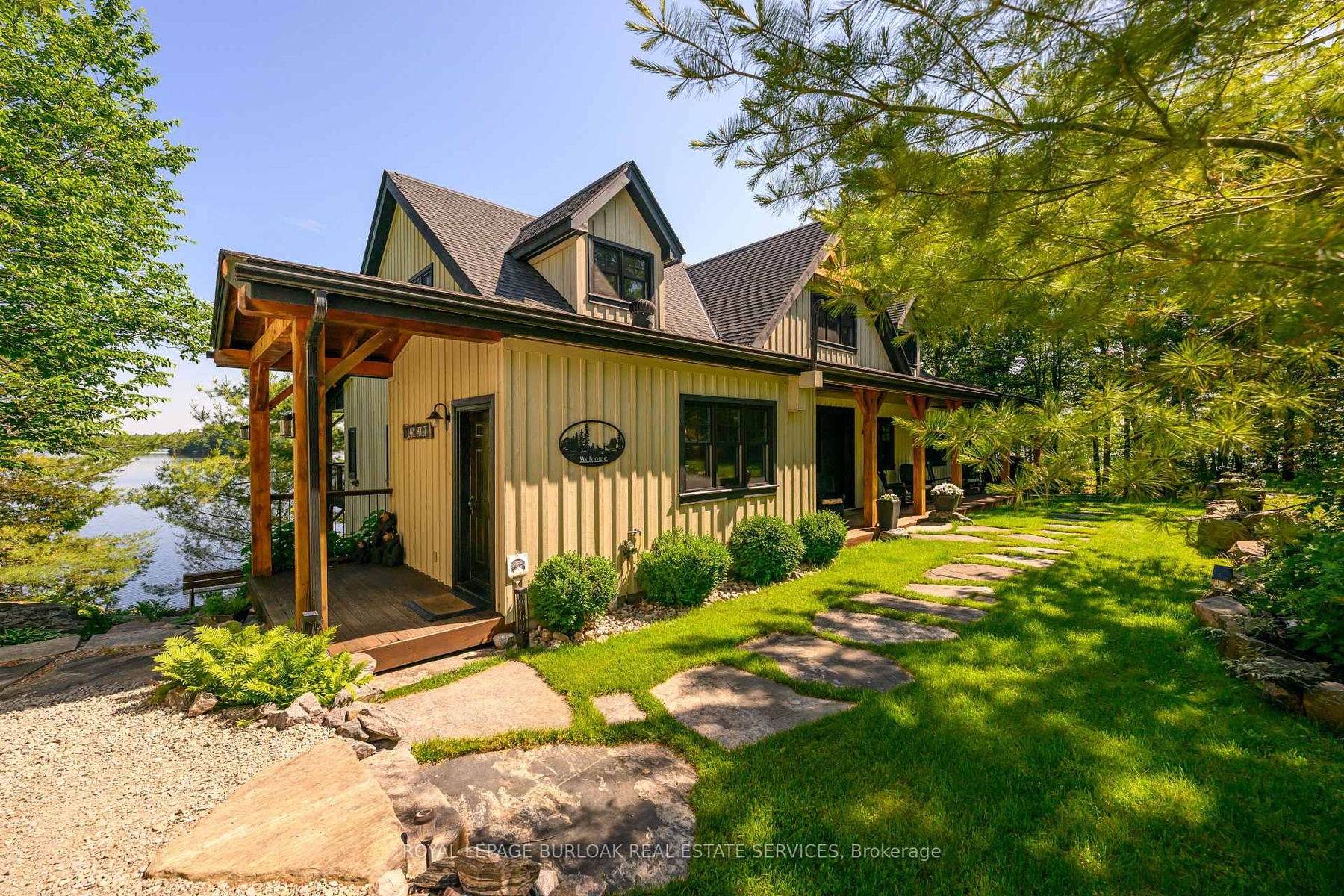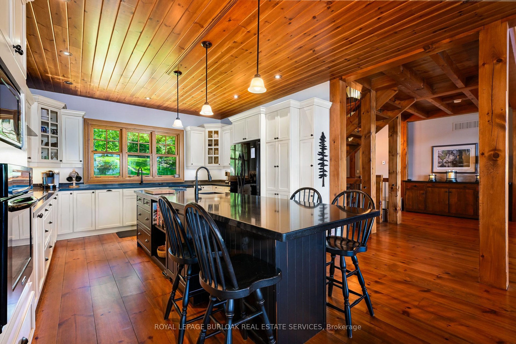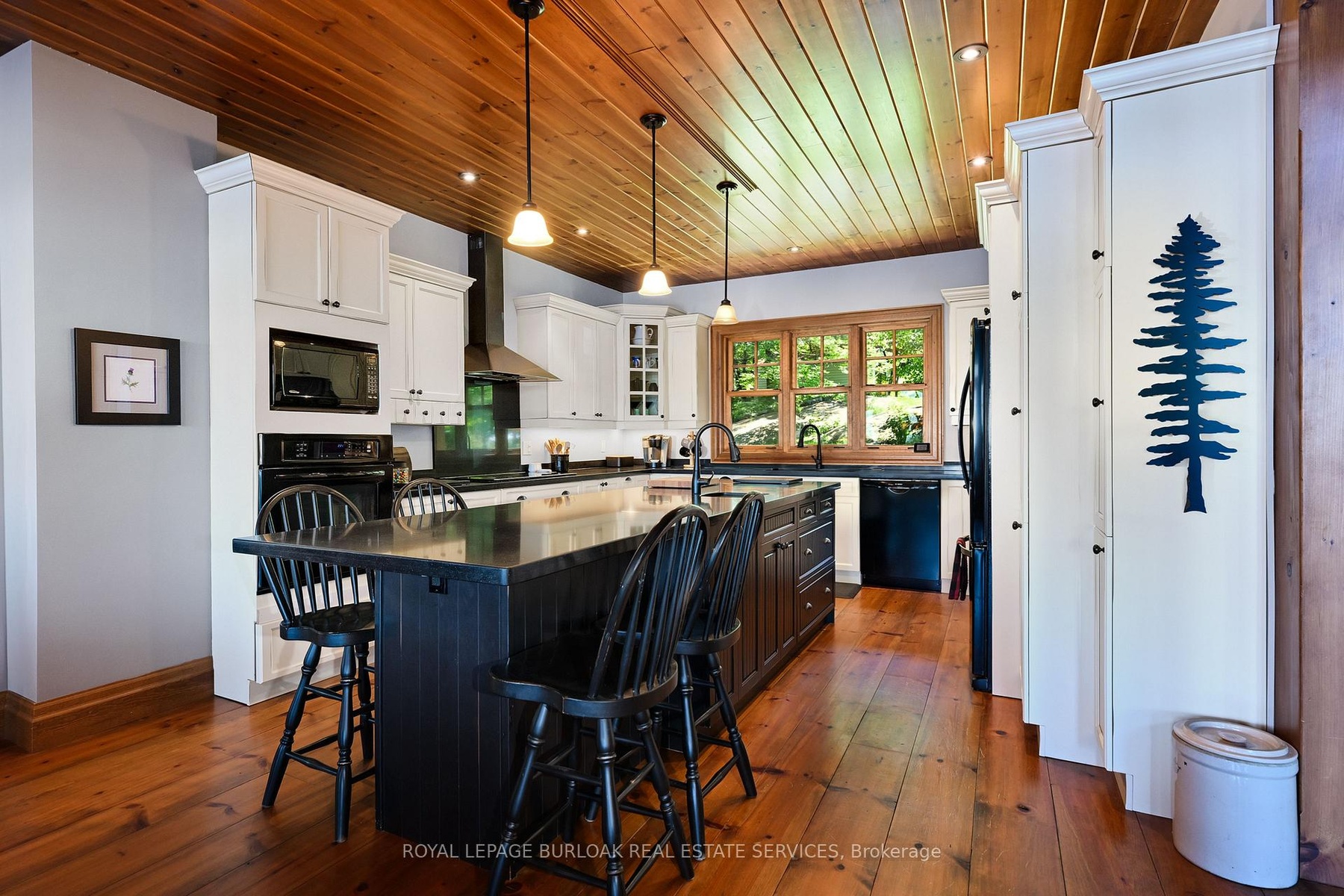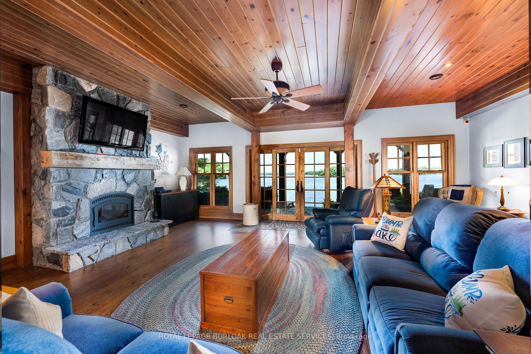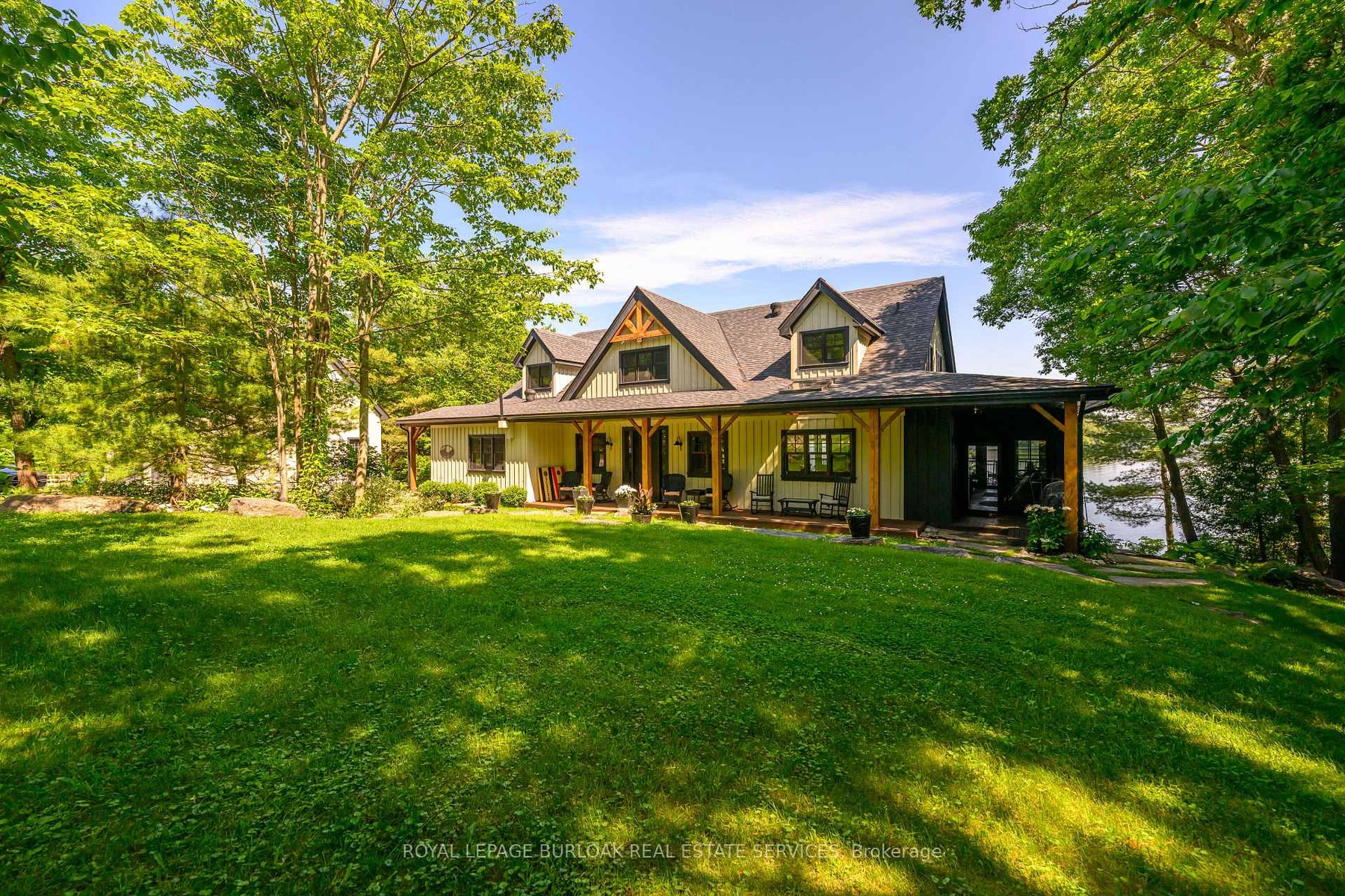 Remarkable Muskoka lakeside retreat on Six Mile Lake, on year-round municipal road, only 90 minutes from GTA. Impressive custom-build w/stunning lake views may be most prestigious property on "the mile." Expansive 333ft of prime, deep waterfront, 1.66 acres w/mature trees & privacy, & absolute show-stopper 6000 sqft, 6 bedrm lake house w/gorgeous pine detail T/O. Open-concept main lvl overlooks lake & accesses the 68x12 covered deck, & includes the kitchen w/quartz CTs & 11ft centre island w/breakfast bar, great rm w/granite stone F/P & 22ft vaulted ceiling, spacious dining rm, main floor primary bedrm w/6pce ensuite, Muskoka rm,2pce bath, & mud rm/laundry rm. 2nd lvl has a den/office, & 2 very large bedrms that could be converted to 4 if desired. Walk-out lower lvl offers a family rm w/granite stone F/P, bar area w/seating for 6, 3 more large bedrms, 8pce bath, & sliding doors to patio & lake. Red Pine &slate floors T/O, 10ft ceilings & in-floor heating on main & lower lvl, pine ceilings, & post &beam construction & ICF foundation, all display the care in this magnificent homes design. Exterior offers an oversized double garage w/600sqft man cave/loft w/heat & AC, triple garage w/2 insulated & heated, & another single garage at side of property, plus parking for 20 more on driveways. Clear & pristine waterfront 6-12ft deep off docks, + bonus shallow wading area at side. 1500sqft of decks & docks along water, including U-shaped boat slip engineered to support a boathouse, plus 1400 sqft of covered deck & patio overlooking the water, & 450 sqft of deck at back of home, totalling over 3350 sqft of decking & patio. NE exposure at waterfront provides beautiful sunrises &sunsets. 280 sqft bunkie at water's edge. Systems include geothermal heating/cooling, drilled well w/complete water system, bio-filter septic system, on-demand water heater, & generator. Contact listing Realtor or any Realtor for floor plans, boathouse drawings, & for full write-up & details of property.