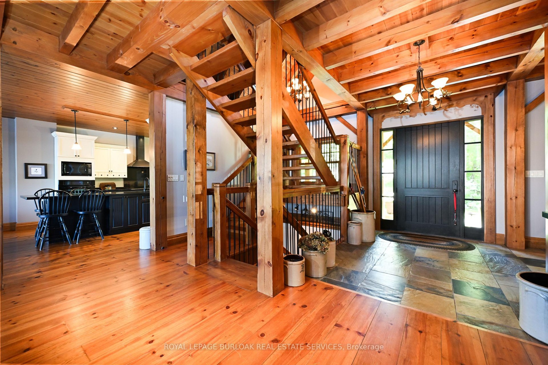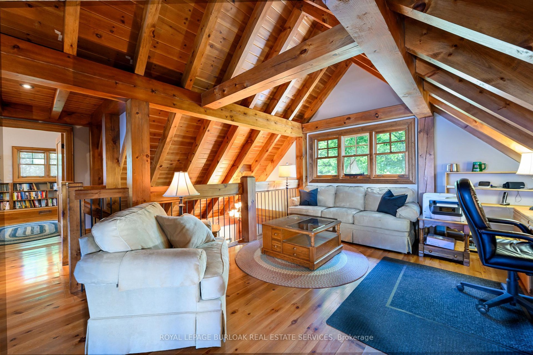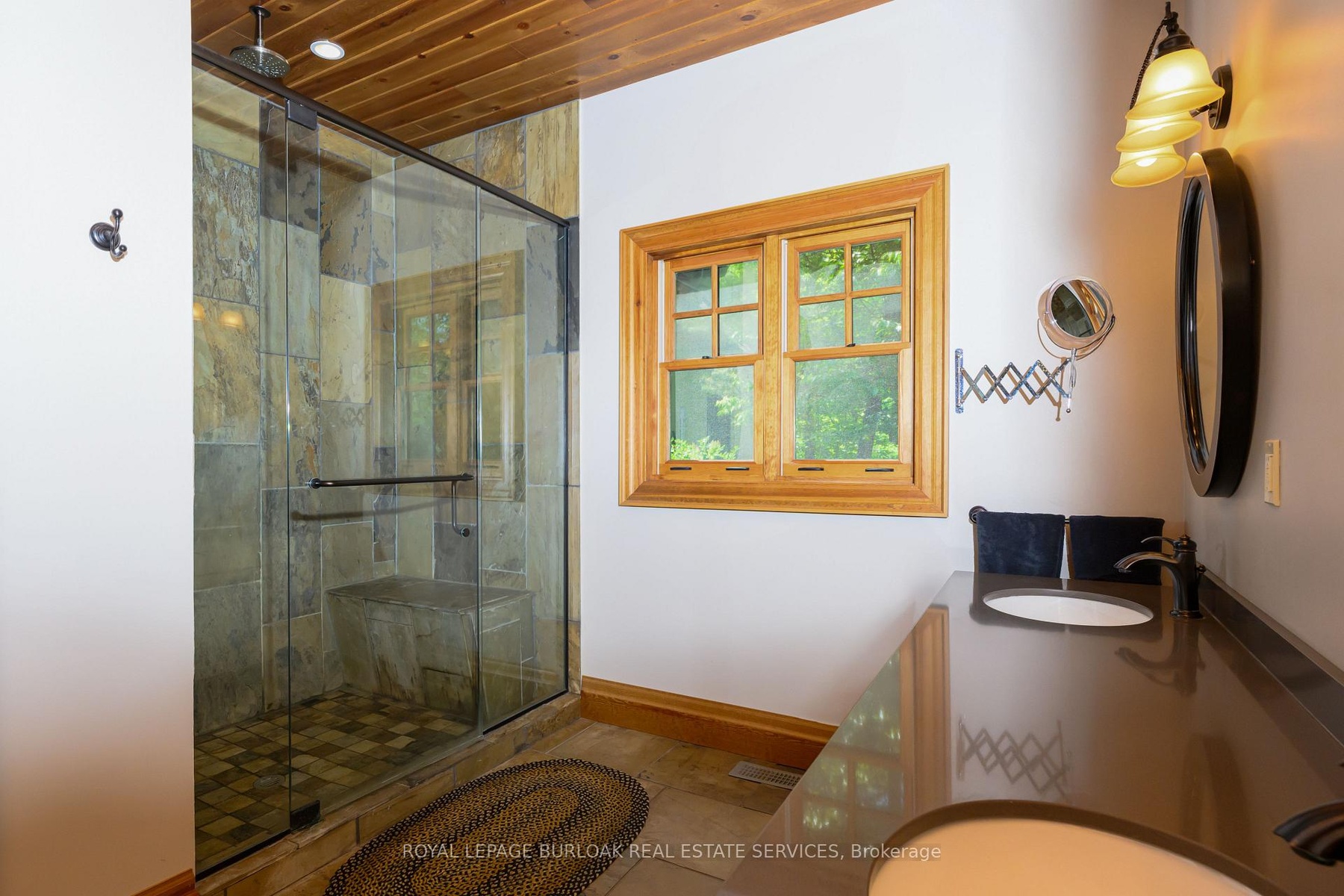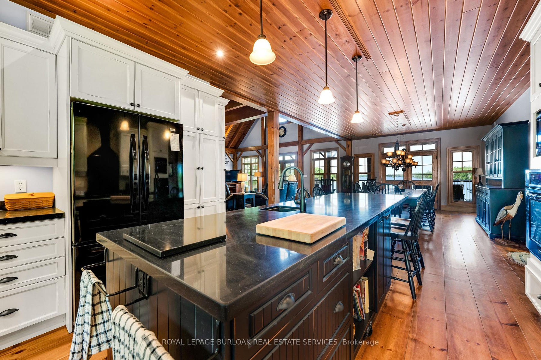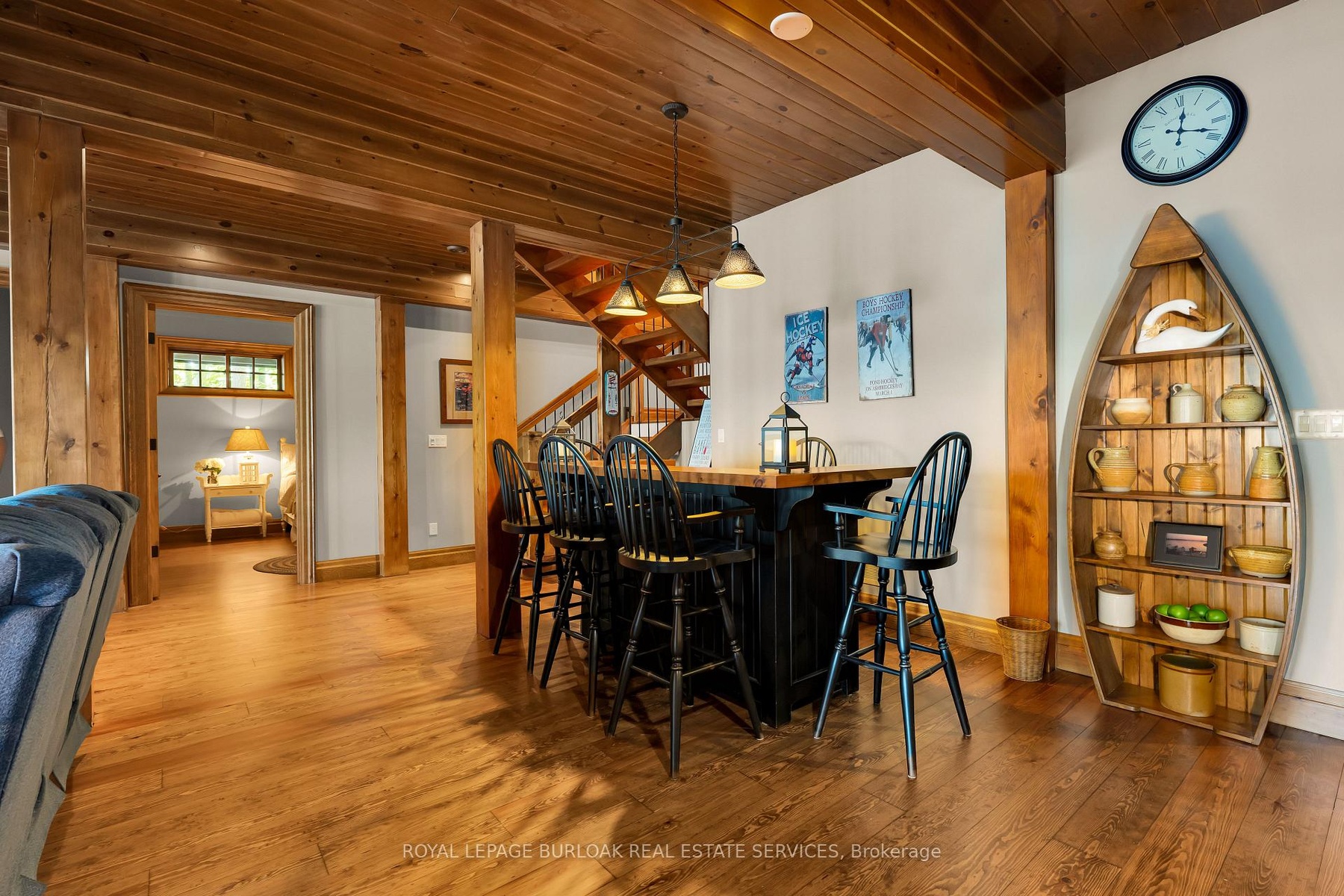Remarkable Muskoka lakeside retreat on Six Mile Lake, on year-round municipal road, only 90 minutes from GTA. Impressive custom-build w/stunning lake views may be most prestigious property on "the mile." Expansive 333ft of prime, deep waterfront, 1.66 acres w/mature trees & privacy, & absolute show-stopper 6000 sqft, 6 bedrm lake house w/gorgeous pine detail T/O. Open-concept main lvl overlooks lake & accesses the 68x12 covered deck, & includes the kitchen w/quartz CTs & 11ft centre island w/breakfast bar, great rm w/granite stone F/P & 22ft vaulted ceiling, spacious dining rm, main floor primary bedrm w/6pce ensuite, Muskoka rm,2pce bath, & mud rm/laundry rm. 2nd lvl has a den/office, & 2 very large bedrms that could be converted to 4 if desired. Walk-out lower lvl offers a family rm w/granite stone F/P, bar area w/seating for 6, 3 more large bedrms, 8pce bath, & sliding doors to patio & lake. Red Pine &slate floors T/O, 10ft ceilings & in-floor heating on main & lower lvl, pine ceilings, & post &beam construction & ICF foundation, all display the care in this magnificent homes design. Exterior offers an oversized double garage w/600sqft man cave/loft w/heat & AC, triple garage w/2 insulated & heated, & another single garage at side of property, plus parking for 20 more on driveways. Clear & pristine waterfront 6-12ft deep off docks, + bonus shallow wading area at side. 1500sqft of decks & docks along water, including U-shaped boat slip engineered to support a boathouse, plus 1400 sqft of covered deck & patio overlooking the water, & 450 sqft of deck at back of home, totalling over 3350 sqft of decking & patio. NE exposure at waterfront provides beautiful sunrises &sunsets. 280 sqft bunkie at water's edge. Systems include geothermal heating/cooling, drilled well w/complete water system, bio-filter septic system, on-demand water heater, & generator. Contact listing Realtor or any Realtor for floor plans, boathouse drawings, & for full write-up & details of property.