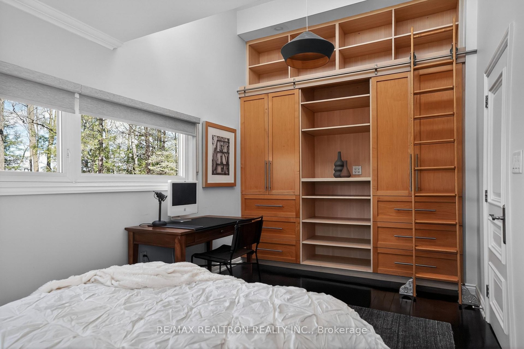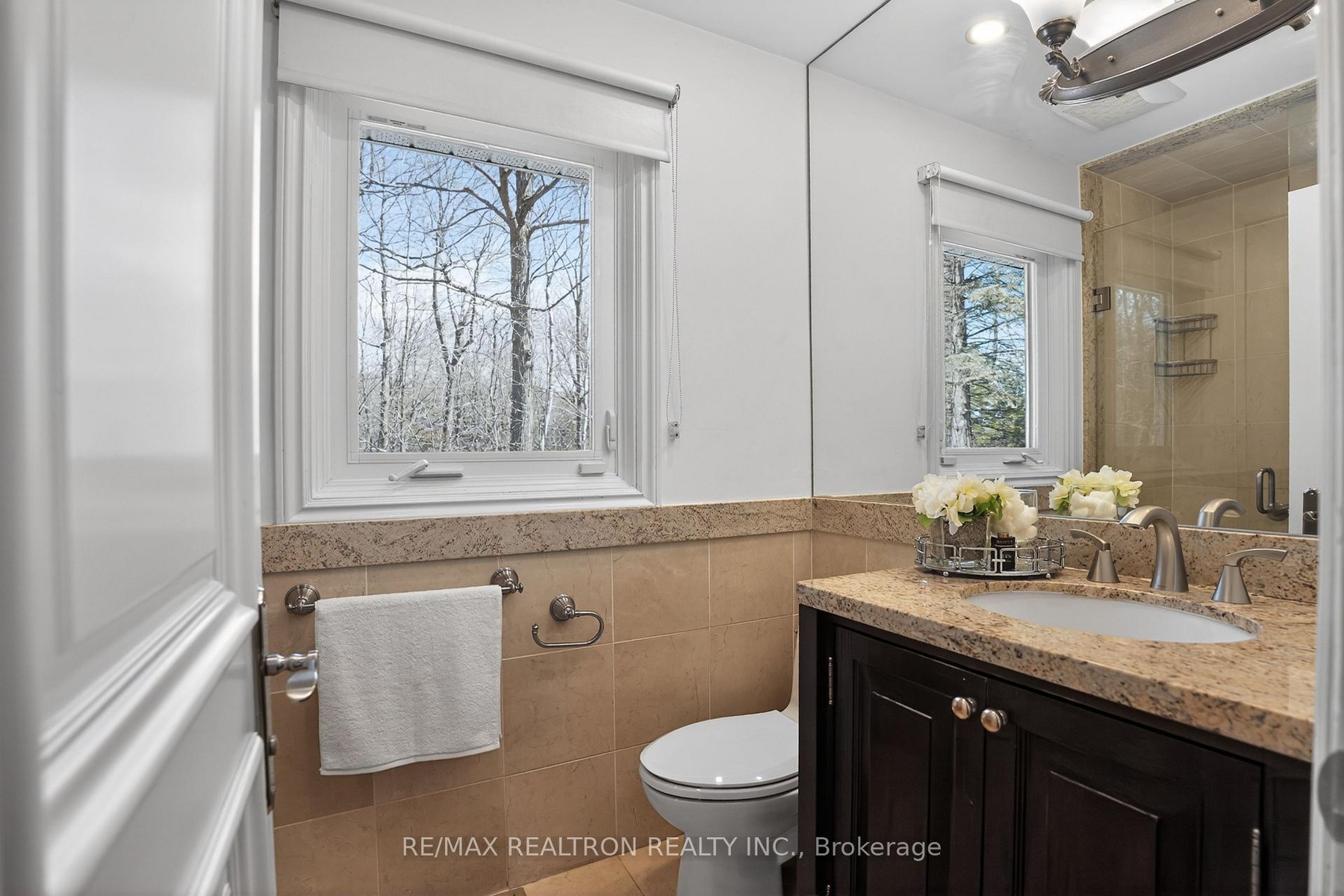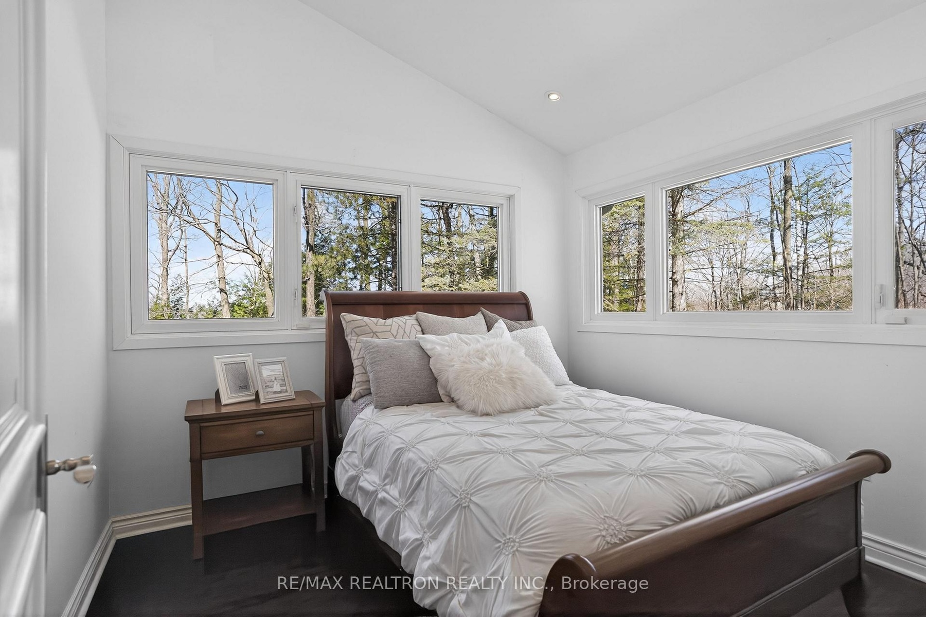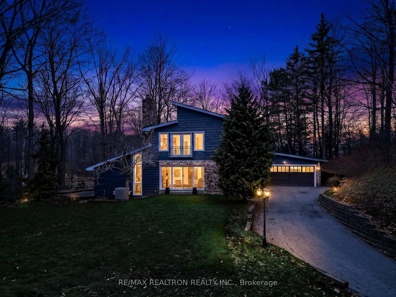 Tucked away within 4.12 acres of serene, forested landscape, this extraordinary custom residence offers an unparalleled blend of seclusion, sophistication, and contemporary living-just moments from the city. Thoughtfully reimagined, the home seamlessly preserves its original charm while embracing modern elegance. A stunning heritage stone fireplace and dramatic volcanic stone feature wall anchor the living space, where expansive windows invite in breathtaking ravine and woodland views-creating a living canvas that changes with the seasons. At the heart of the home, A fully integrated German-inspired kitchen defined by clean architectural lines, featuring a sculptural waterfall island in premium Cambria quartz with marble-inspired veining and architectural concrete-style cabinetry. A seamless cooking wall with integrated Miele cooking surface and Teppanyaki grill is complemented by a curated Miele appliance suite, including built-in oven, microwave, steam oven, coffee system, warming drawer, and integrated dishwasher. A dedicated home office overlooks the tranquil backyard, offering an inspiring setting immersed in nature. Upstairs, the primary suite is a private sanctuary, complete with a sleek electric fireplace, a relaxing sitting area, and a spa-inspired ensuite featuring heated floors for year-round comfort. Additional bedrooms are beautifully appointed with custom built-ins, generous closet space, and sweeping panoramic views. The finished lower level provides versatile space for recreation, wellness, or entertainment. Recent upgrades include a 200-amp electrical panel, updated mechanical systems, and a comprehensive security system for peace of mind. A winding private drive guide you through peaceful woodlands to this remarkable residence-where luxury and nature exist in perfect harmony. An exceptional opportunity also awaits to design and build your own infinity pool, further elevating this already breathtaking retreat.