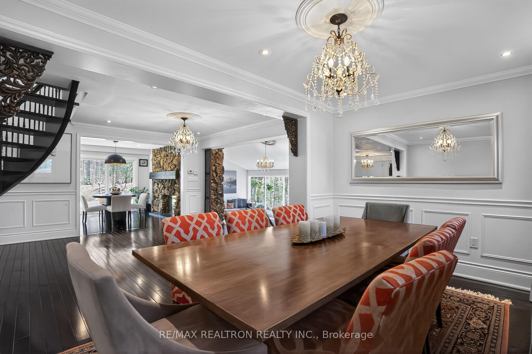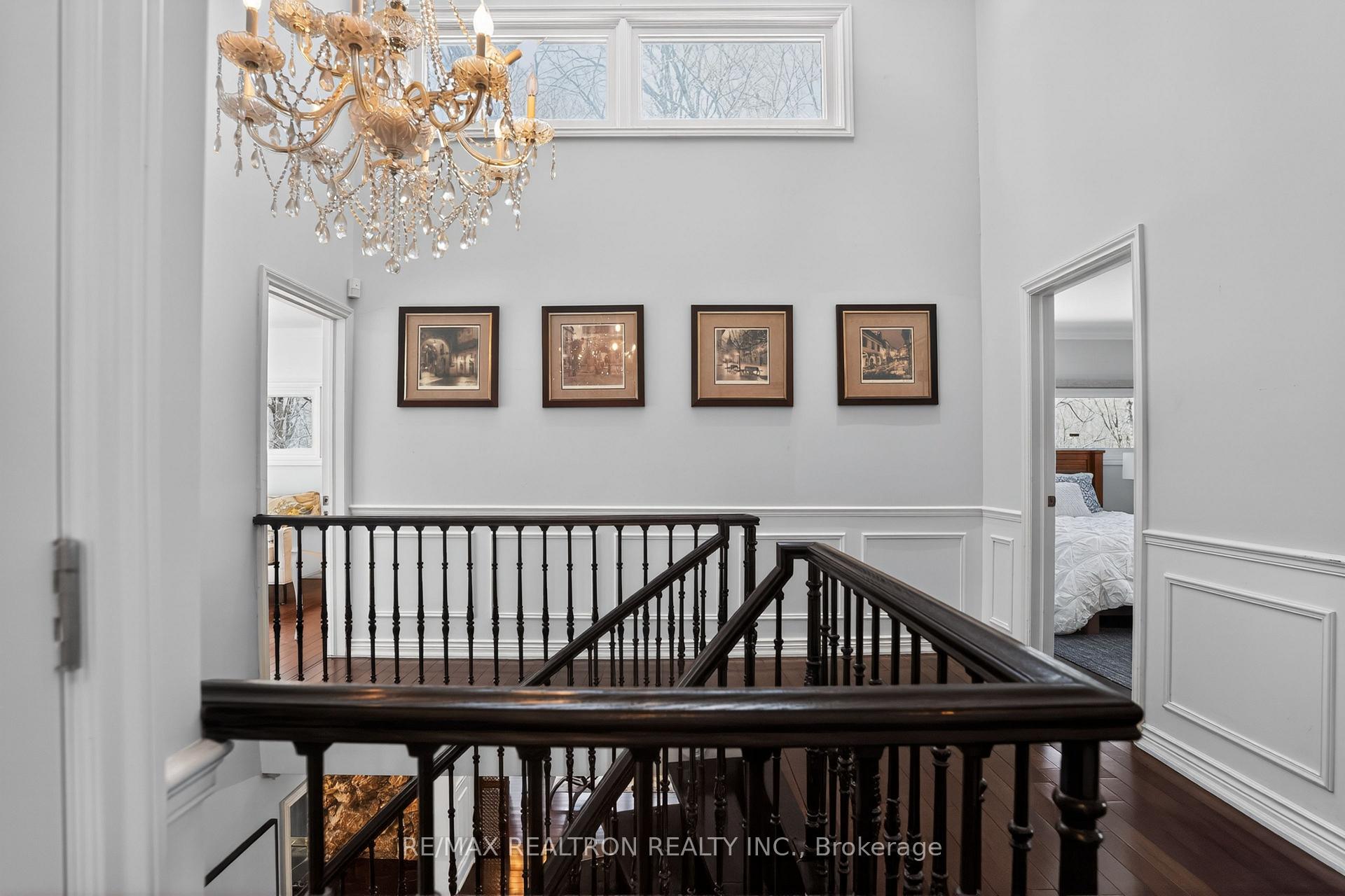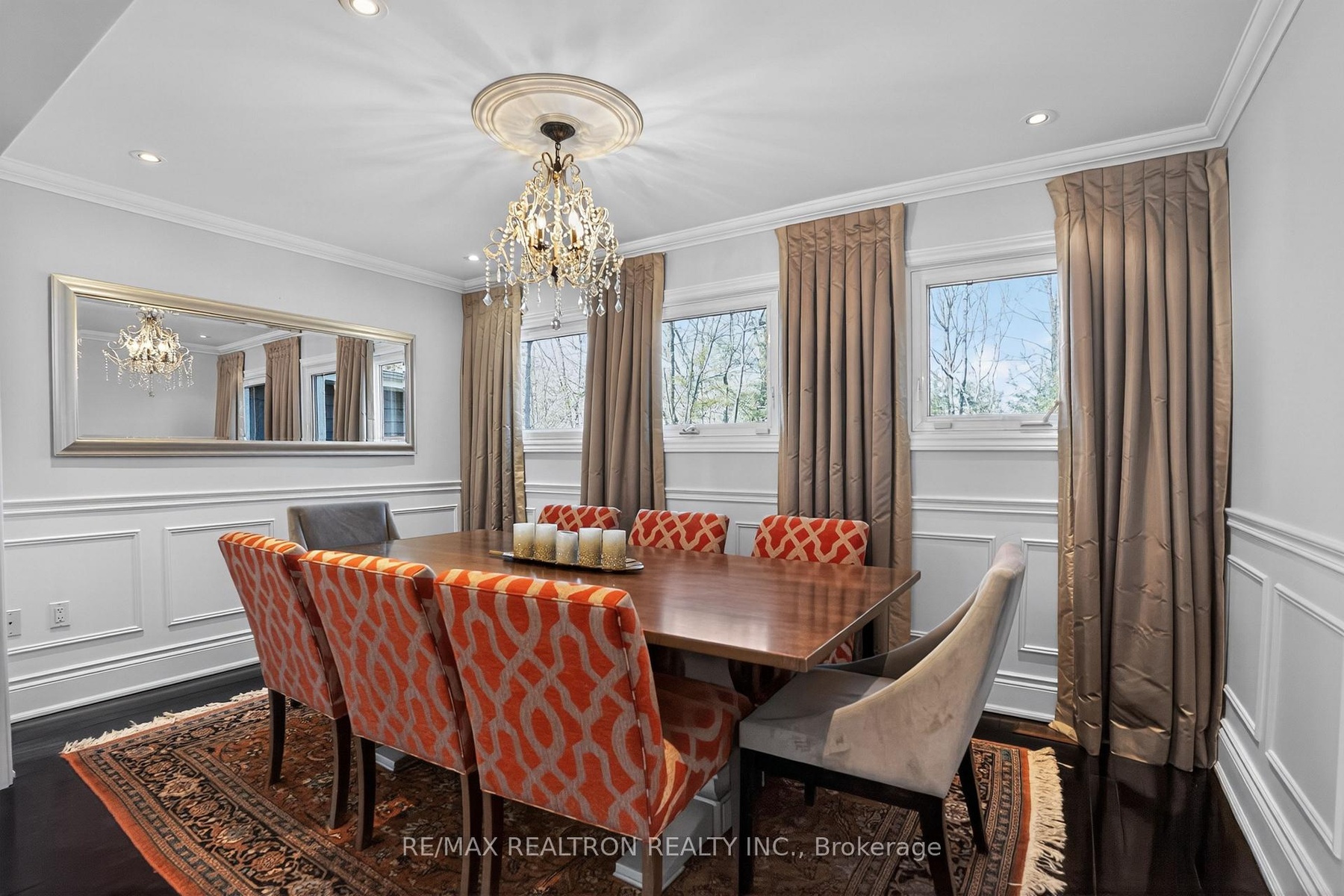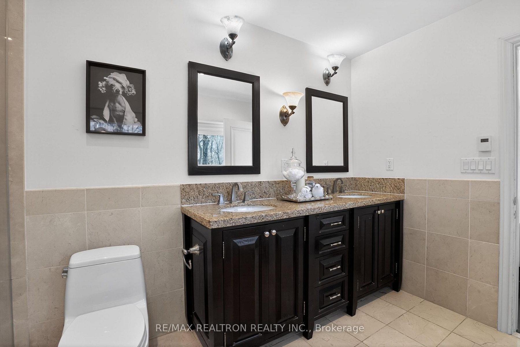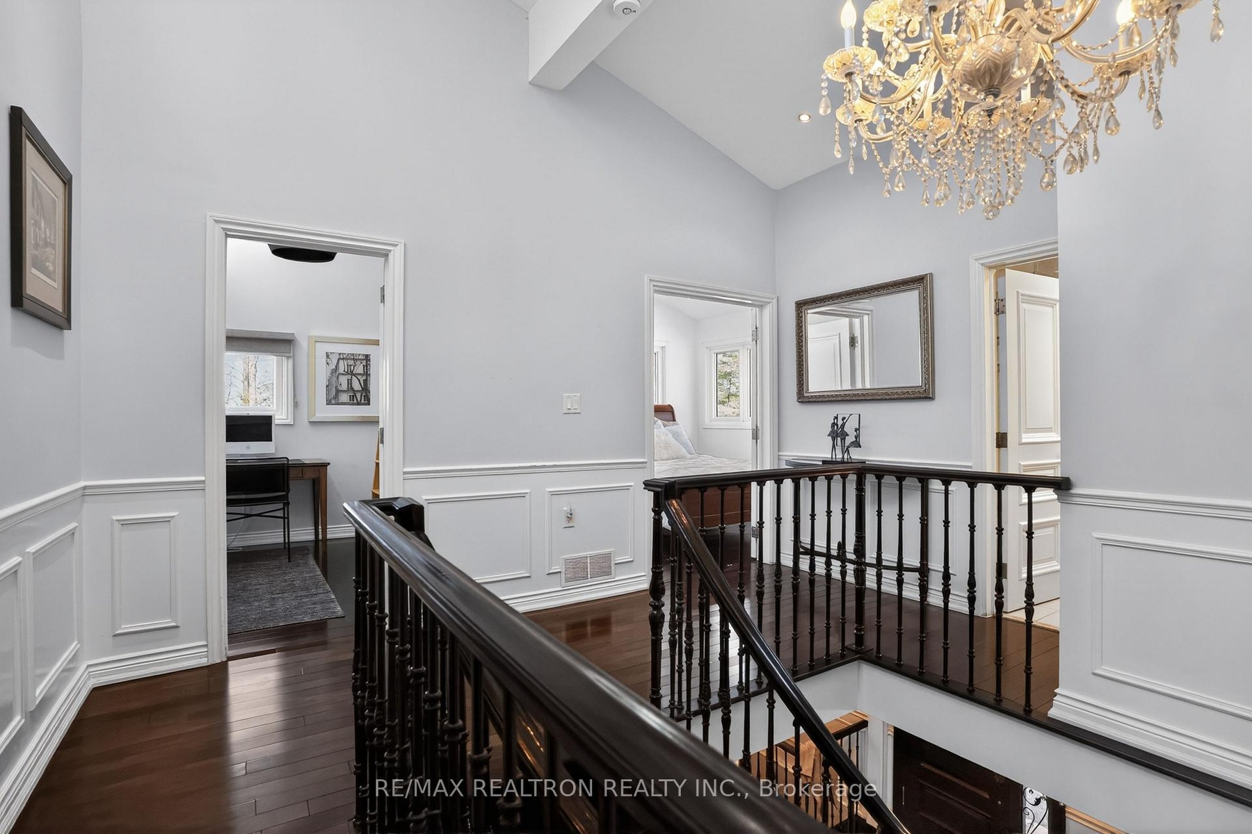 Tucked away within 4.12 acres of serene, forested landscape, this extraordinary custom residence offers an unparalleled blend of seclusion, sophistication, and contemporary living-just moments from the city. Thoughtfully reimagined, the home seamlessly preserves its original charm while embracing modern elegance. A stunning heritage stone fireplace and dramatic volcanic stone feature wall anchor the living space, where expansive windows invite in breathtaking ravine and woodland views-creating a living canvas that changes with the seasons. At the heart of the home, A fully integrated German-inspired kitchen defined by clean architectural lines, featuring a sculptural waterfall island in premium Cambria quartz with marble-inspired veining and architectural concrete-style cabinetry. A seamless cooking wall with integrated Miele cooking surface and Teppanyaki grill is complemented by a curated Miele appliance suite, including built-in oven, microwave, steam oven, coffee system, warming drawer, and integrated dishwasher. A dedicated home office overlooks the tranquil backyard, offering an inspiring setting immersed in nature. Upstairs, the primary suite is a private sanctuary, complete with a sleek electric fireplace, a relaxing sitting area, and a spa-inspired ensuite featuring heated floors for year-round comfort. Additional bedrooms are beautifully appointed with custom built-ins, generous closet space, and sweeping panoramic views. The finished lower level provides versatile space for recreation, wellness, or entertainment. Recent upgrades include a 200-amp electrical panel, updated mechanical systems, and a comprehensive security system for peace of mind. A winding private drive guide you through peaceful woodlands to this remarkable residence-where luxury and nature exist in perfect harmony. An exceptional opportunity also awaits to design and build your own infinity pool, further elevating this already breathtaking retreat.